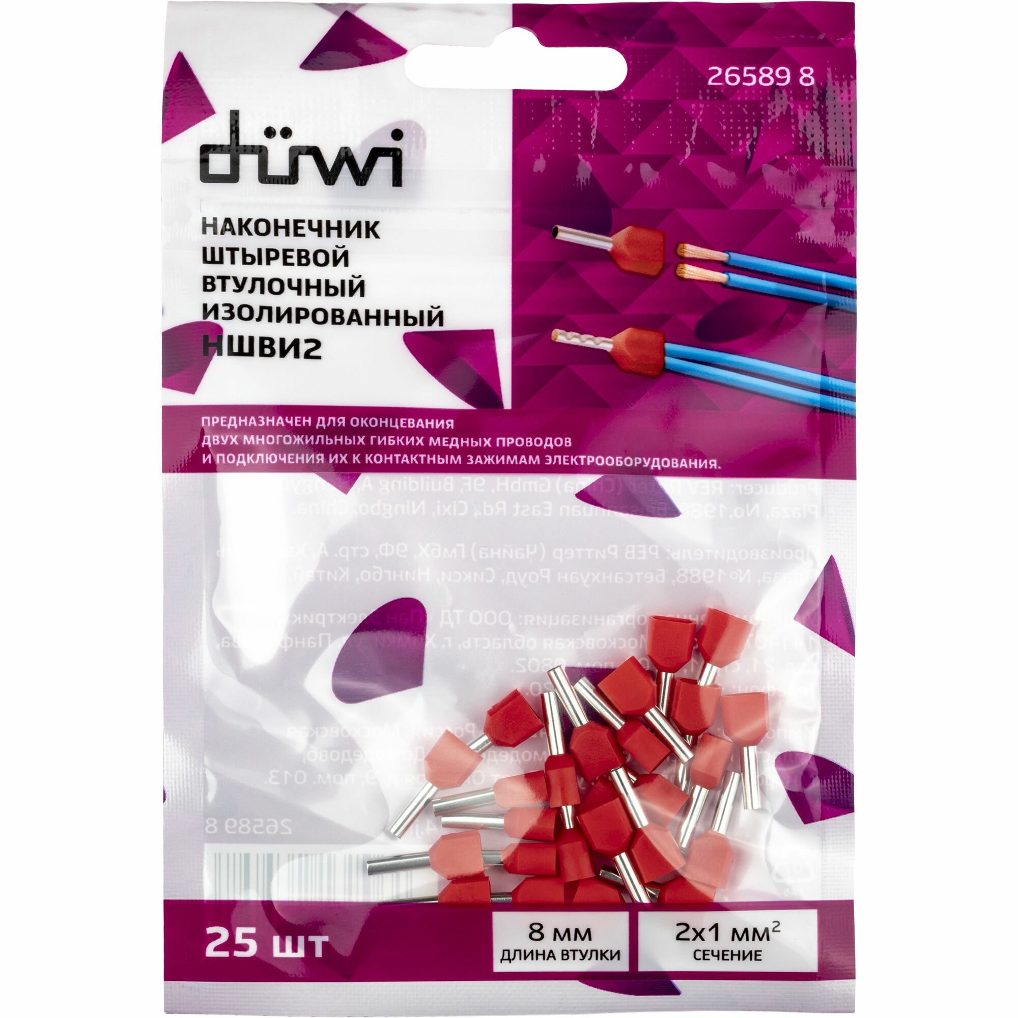 Наконечник-гильза Duwi НШВИ 2 1-8 мм цвет красный 25 шт.