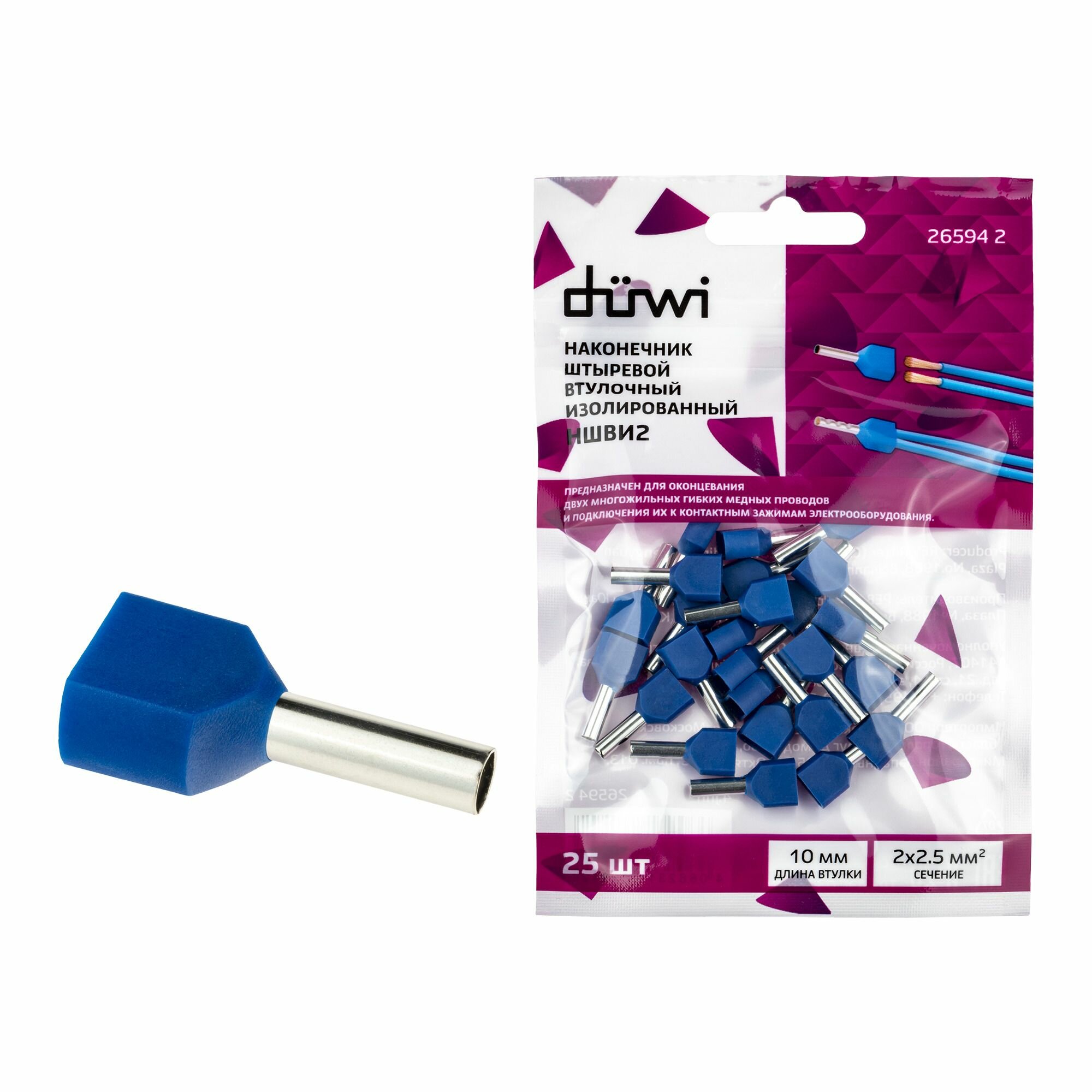 Наконечник-гильза Duwi НШВИ 2 2.5-10 мм цвет синий 25 шт.