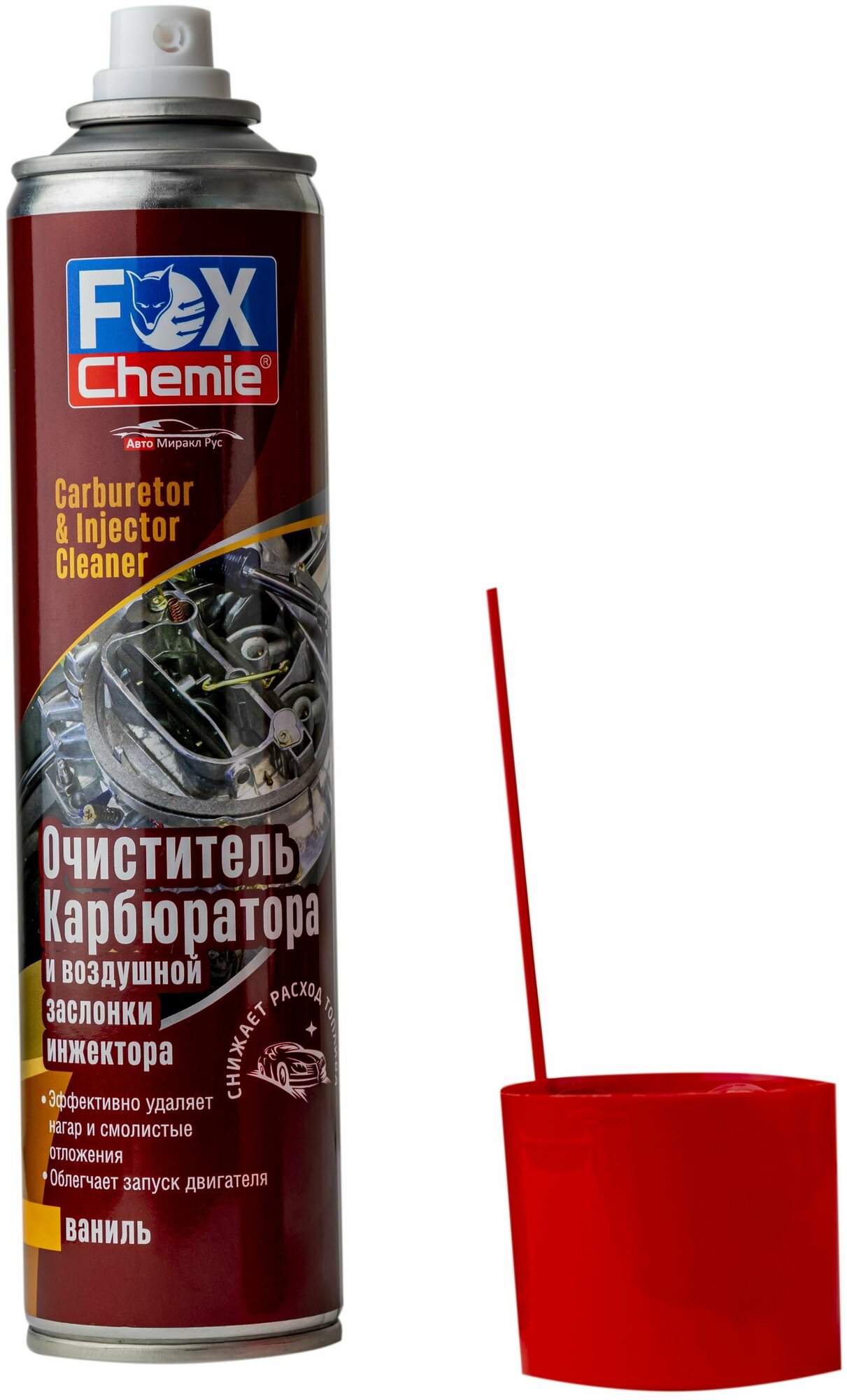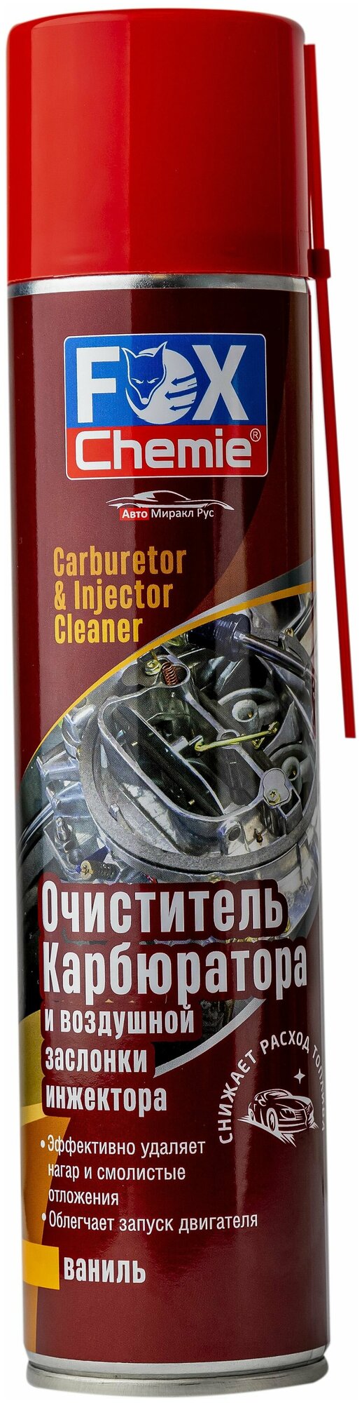 **Очиститель карбюратора и воздушной заслонки инжектора с ароматом ванили Fox Chemie 400 мл** быстро и эффективно удаляет нагар и смолистые отложения с дроссельных заслонок, систем и деталей карбюратора, воздушных и топливных жиклеров.