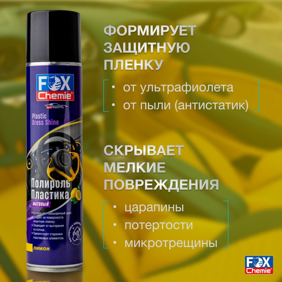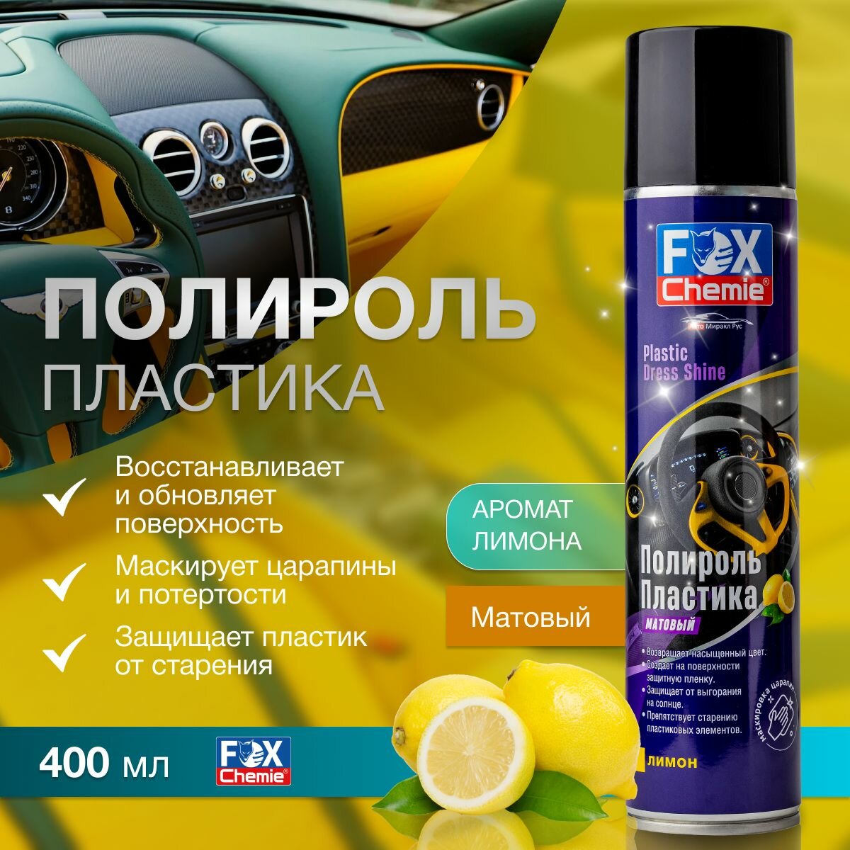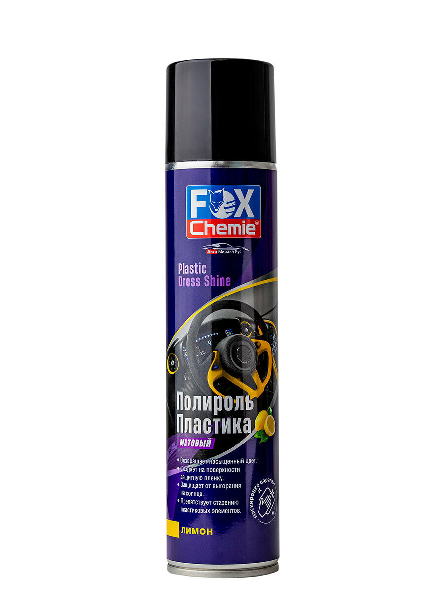 **Полироль пластика матовый с ароматом лимона Fox Chemie 400 мл** эффективное средство для восстановления внешнего вида пластиковых элементов.