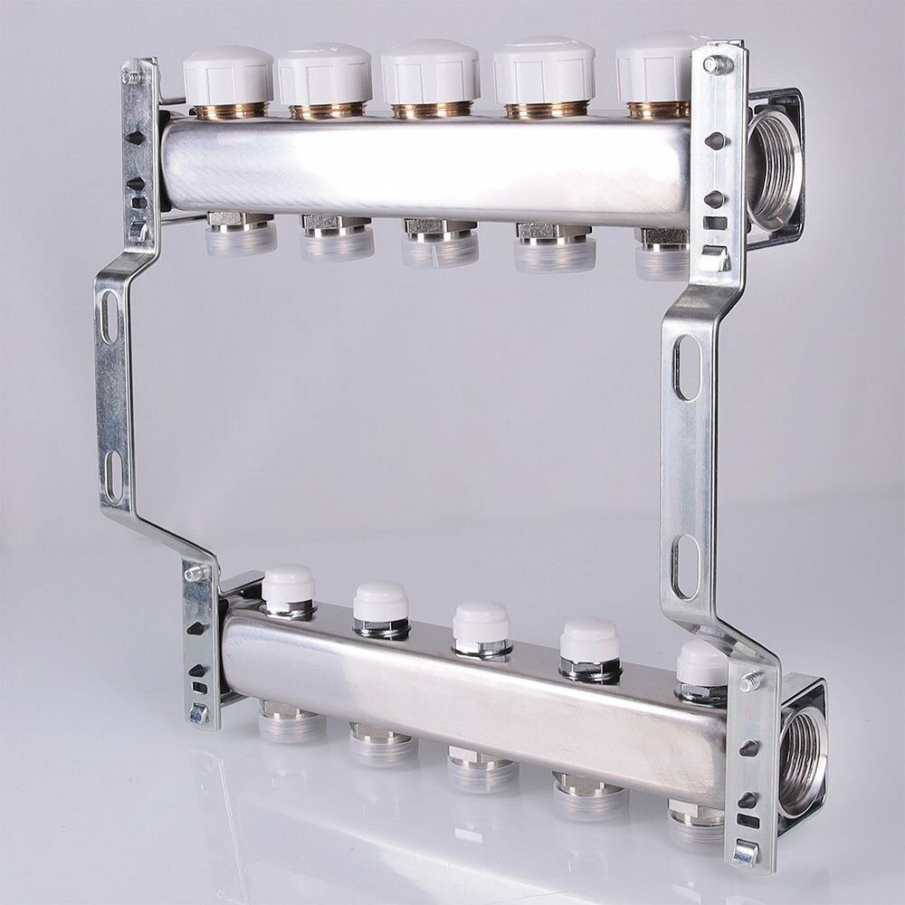 (VTc.582. EMNX) Коллекторные блоки из нержавеющей стали VTc.582 служат для распределения потока транспортируемой среды по контурам системы отопления -- напольного или радиаторного.