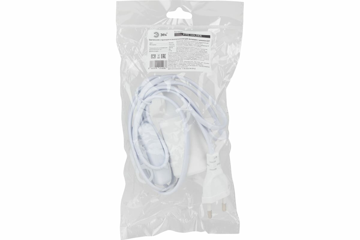 Фитосветильник светодиодный для растений ЭРА Fito-Holder E27 с проводом и выключателем для фитоламп с цоколем Е27 FITOHolder E27