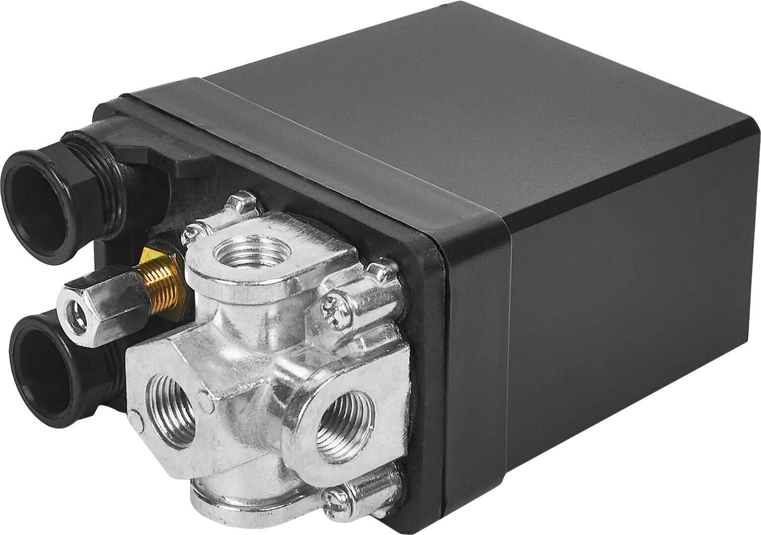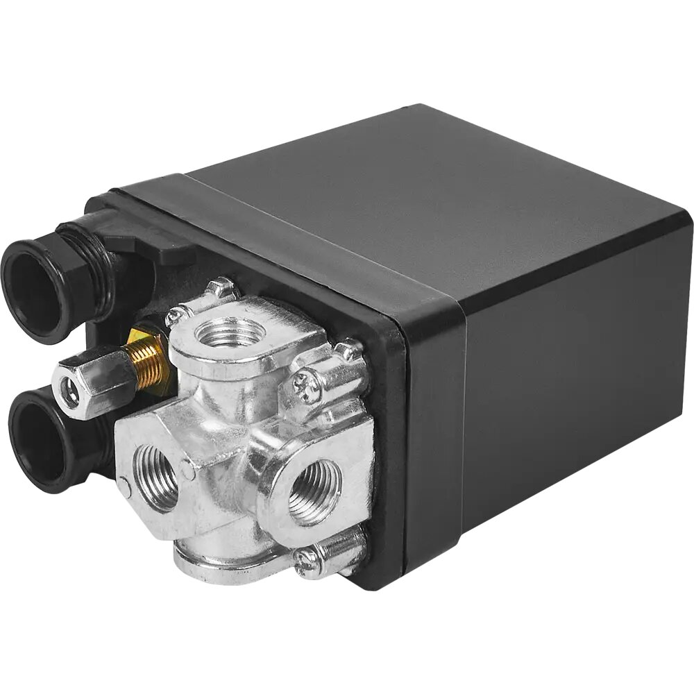 **Реле для компрессора Pegas Pneumatic 2603** предназначено для переключения давления в компрессорной установке. Устройство позволяет вести оперативный контроль за уровнем воздуха, распределяющийся по четырем направлениям. Сверху располагается разгрузочный клапан.