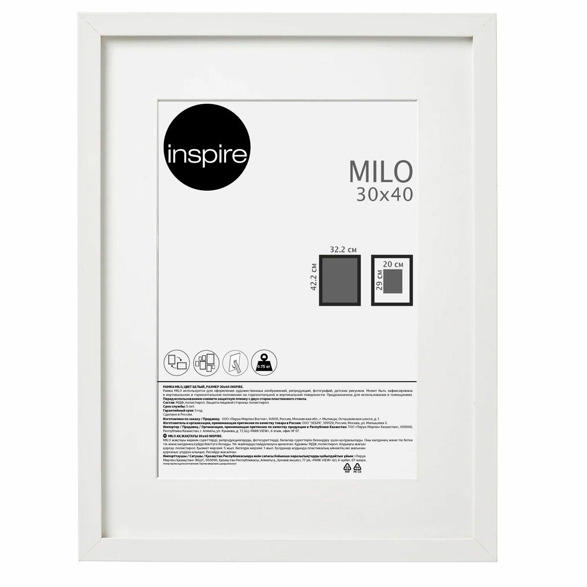 **Рамка Inspire Milo** предназначена для декорирования жилых или административных учреждений. Может применяться для размещения фотографий, небольших вышивок и поделок. Лицевая сторона закрыта синтетическим стеклом. На тыльной — расположены подвес для крепления на стене и подставка, придающая устойчивость на столе, полке или тумбе. Ухаживать за покрытием рекомендуется сухой или слегка влажной чистой ветошью.
