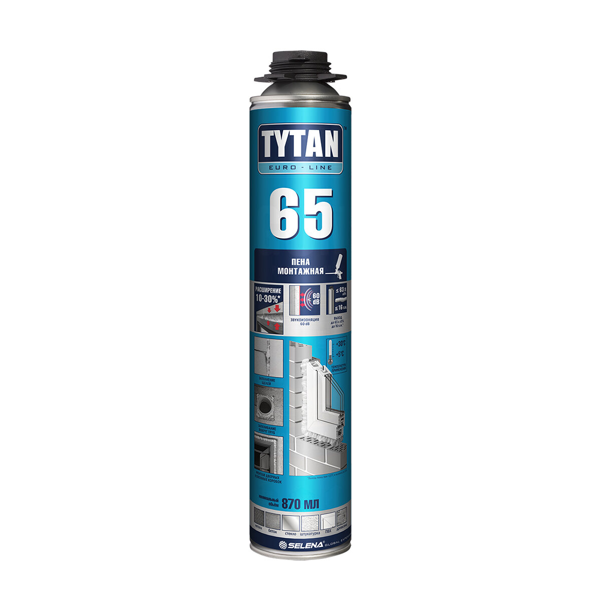 Пена монтажная TYTAN65 объемом 870 мл является надежным и универсальным решением для монтажных работ. Она предназначена для использования с помощью пистолета, что обеспечивает удобство и точность при нанесении.