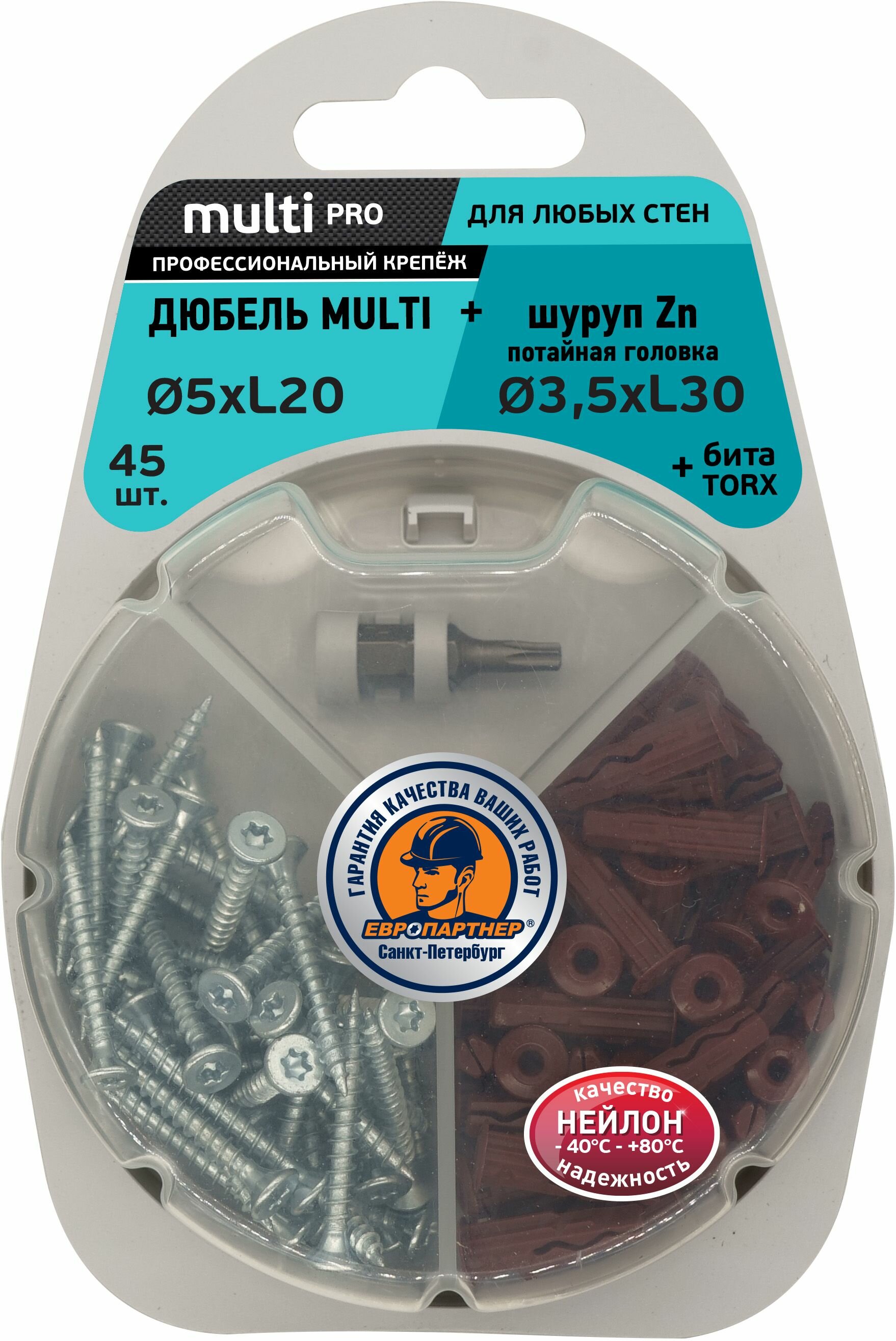 Дюбель универсальный с шурупом Европартнер Multi 3.5x30 мм нейлон сталь 45 шт.