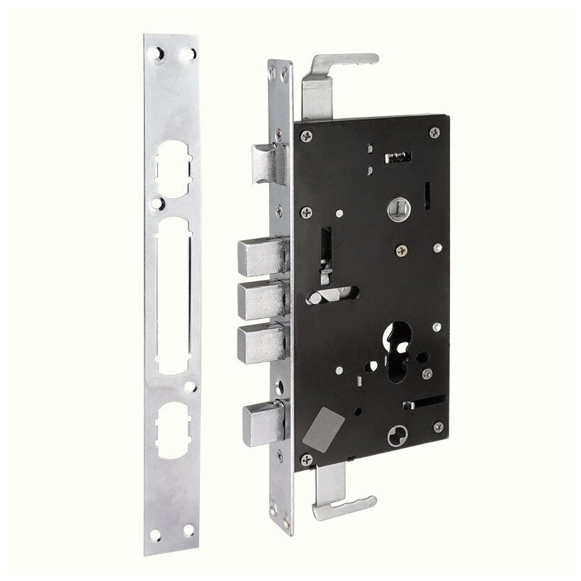 Функция автоматического запирания. Корпус замка предназначен для китайских входных металлических дверей толщиной 35–70 мм. Корпус замка изготовлен из стали, оснащен тремя ригелями, межосевое расстояние составляет 68 мм. Для установки на двери левого открывания. Корпус КЗВР-1А предназначен для комплектации с ручкой на планке и цилиндровым механизмом секретности. В корпусе нет сквозного отверстия под квадрат ручки, он комплектуется только ручками на планке с автоматическим запиранием (с ними в комплекте идет 2 коротких квадрата).