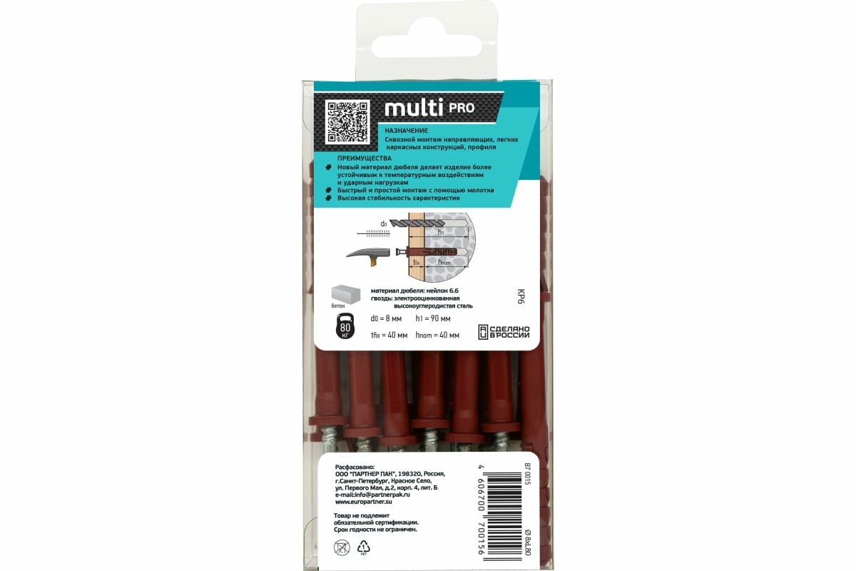 | Вид дюбеля | Дюбель-гвоздь ЕВРОПАРТНЕР |