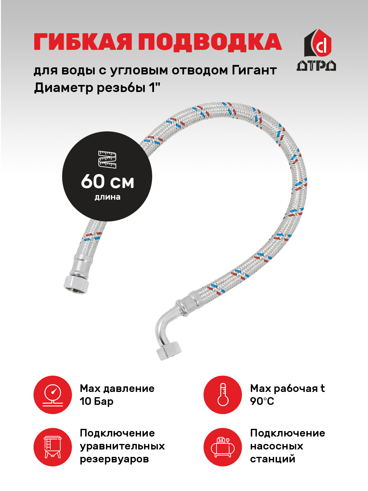 Гибкая подводка для воды угловая ДТРД 1" внутренняя резьба 60 см