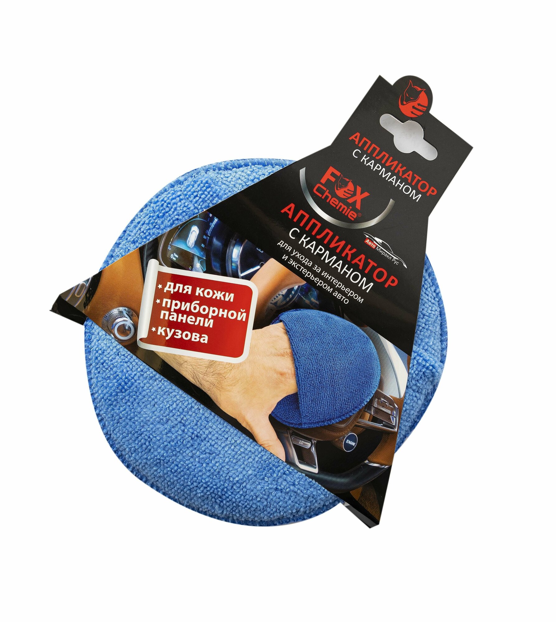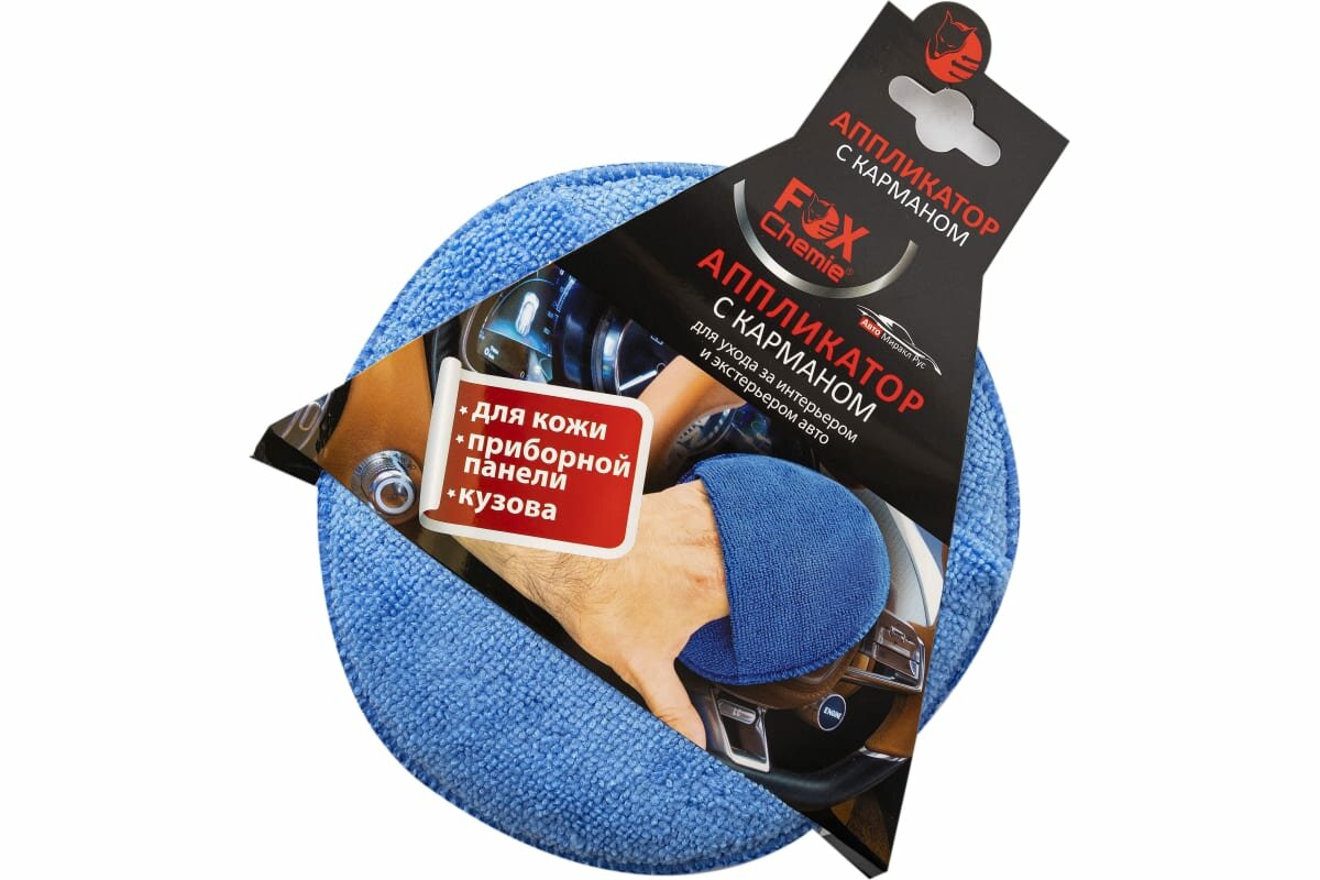 **Аппликатор с карманом для ухода за авто** предназначен для ухода за интерьером и экстерьером автомобиля, нанесения защитных покрытий. Идеален для нанесения кондиционеров для кожи, полироли для приборной панели, очищения кожи, нанесения защитных твердых восков, сиалантов и глэйзов.
