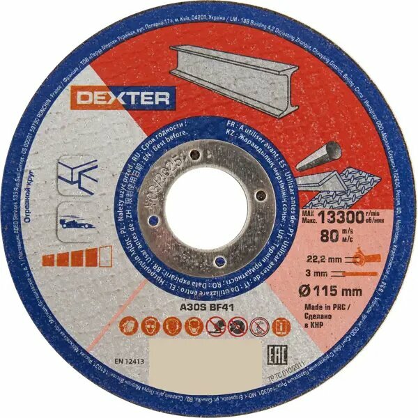 Диск отрезной по стали Dexter 115x22.2x3 мм (66252845521)