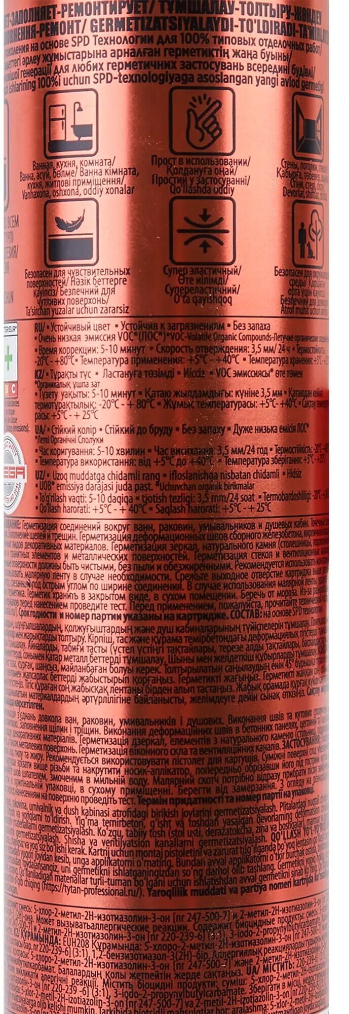 - Герметик не содержит растворителей и безопасен для окружающей среды.