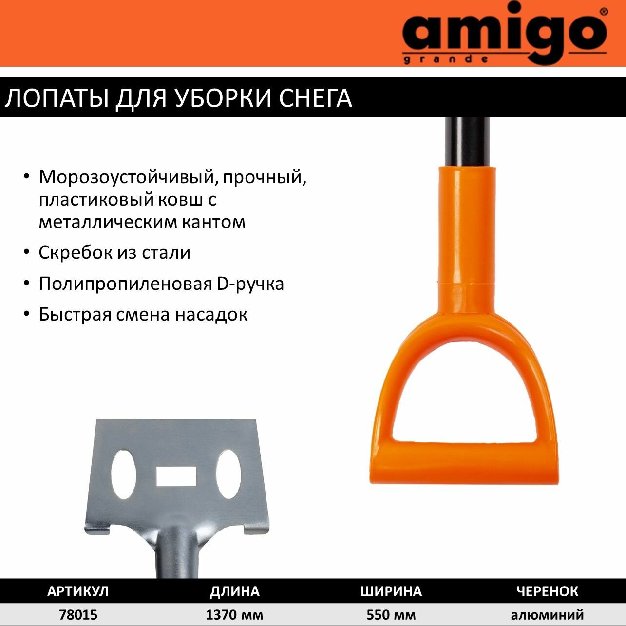 Лопата для снега ледоруб Amigo пластик 150 см черный