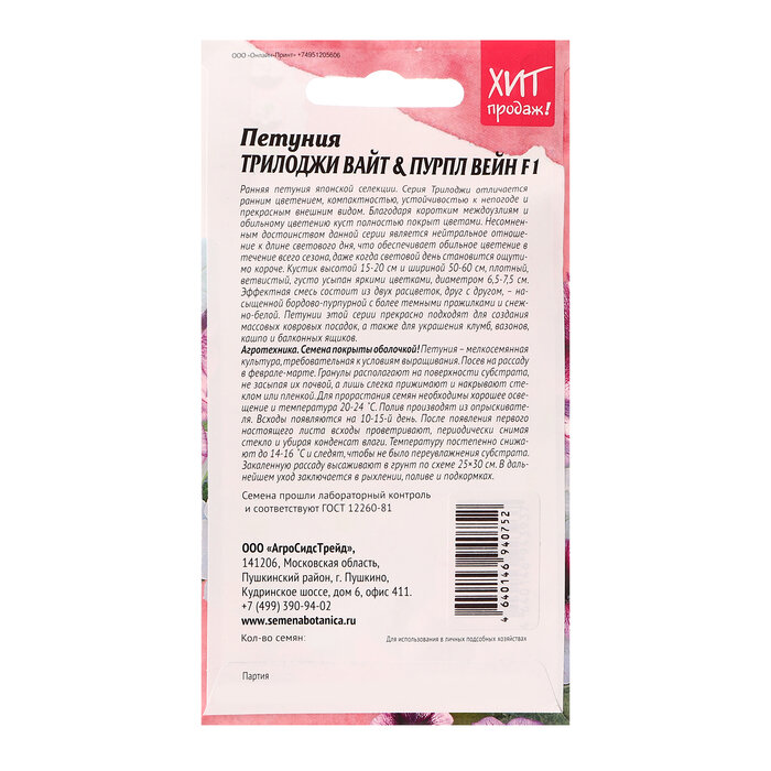 Сервис сравнения цен СкидкаГИД предлагает сравнить цены на товар «Семена цветов Агросидстрейд петуния Трил Вайт Энд Пурпл Вэйн 5 шт.»