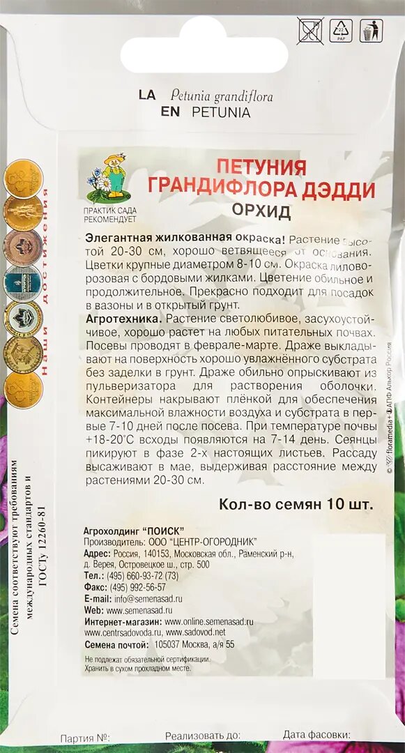 Сервис сравнения цен СкидкаГИД предлагает сравнить цены на товар «Семена цветов Поиск петуния грандифлора Дэдди Орхид 10 шт.»