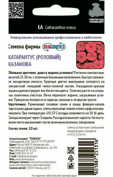 Сервис сравнения цен СкидкаГИД предлагает сравнить цены на товар «Семена цветов Поиск катарантус Казанова 10 шт.»