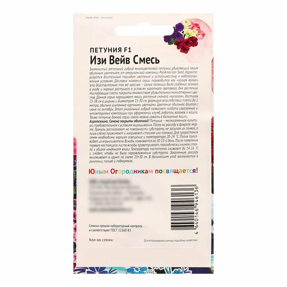 На сегодняшний день товар «Семена цветов Детская грядка петуния Изи Вейв F1 смесь окрасок 5 шт.» можно купить с кешбеком в 1 магазине: Яндекс.Маркет