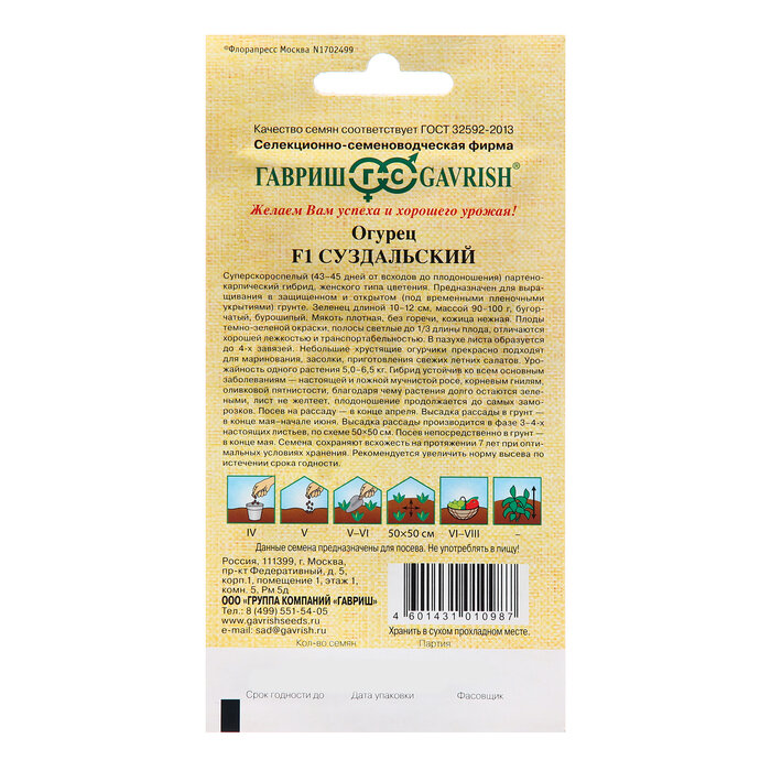 Сервис сравнения цен СкидкаГИД предлагает сравнить цены на товар «Семена овощей Гавриш огурец Суздальский 10 шт.»