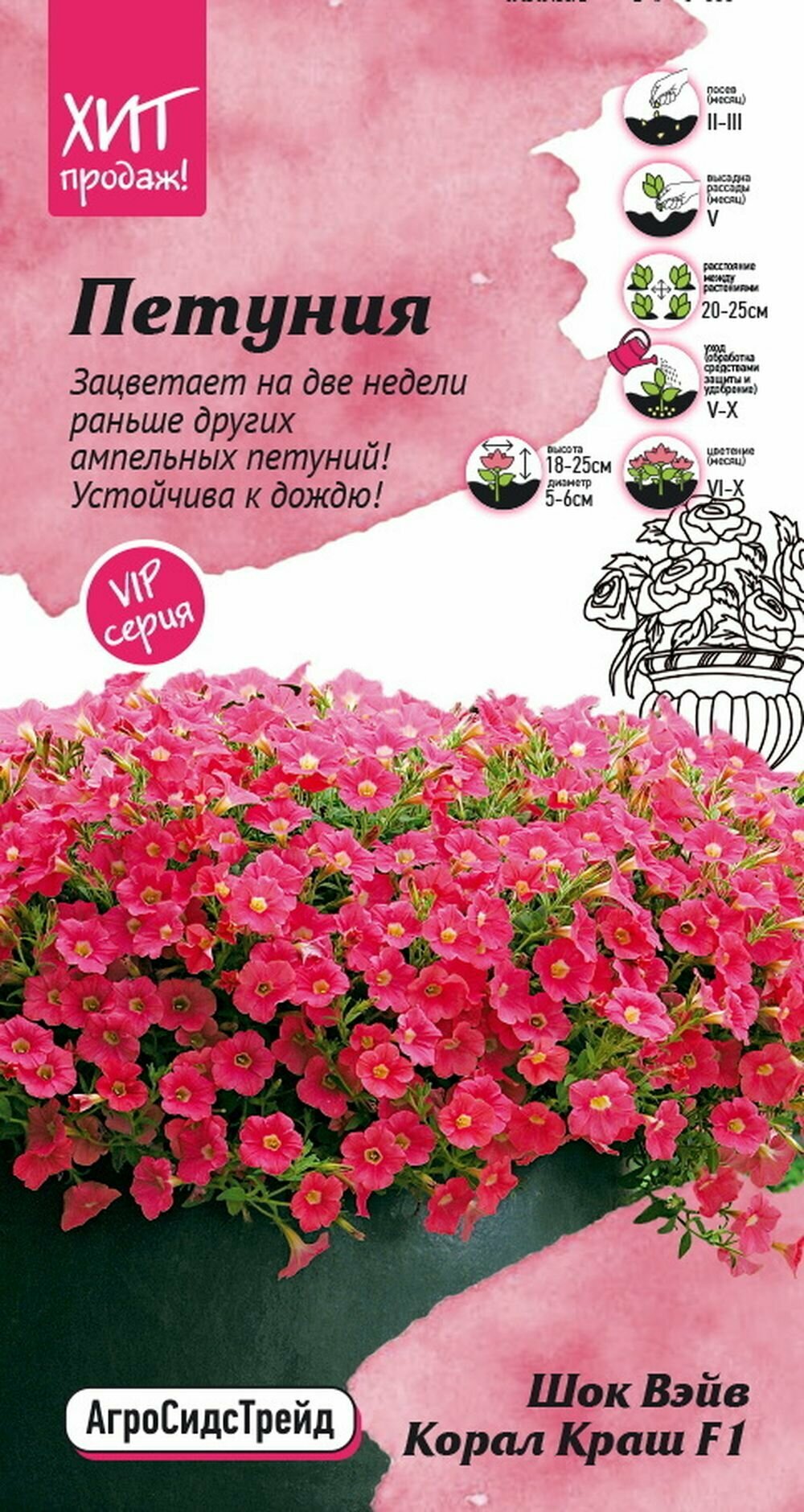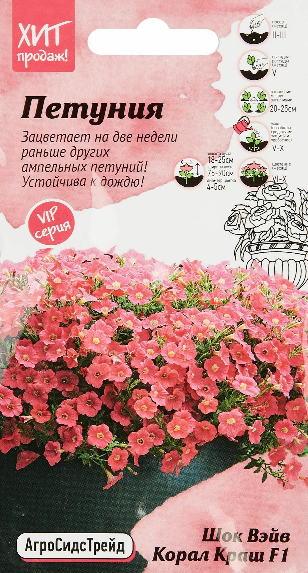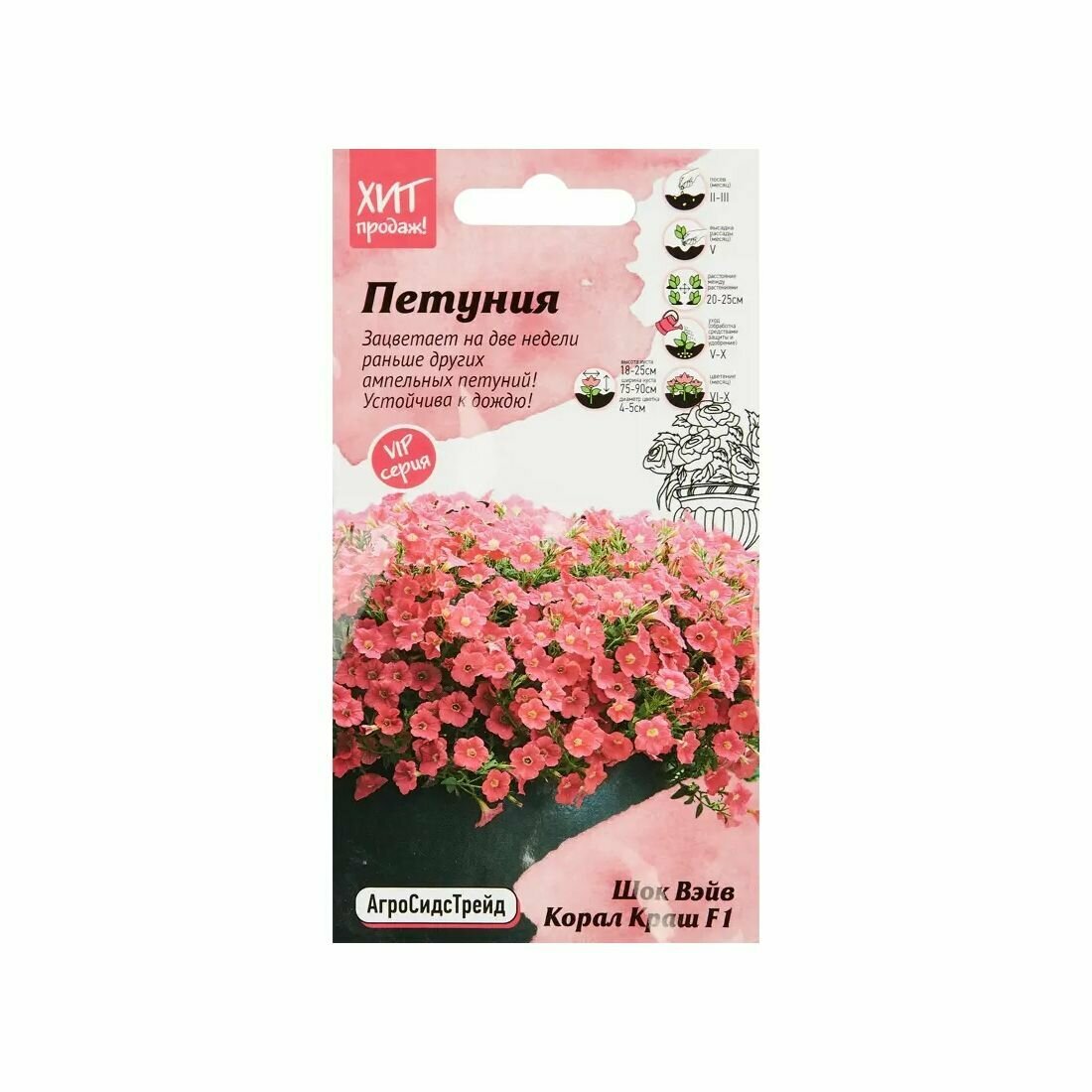 Семена цветов Агросидстрейд петуния Шок Вэйв Корал Краш F1 5 шт.