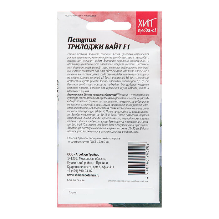 Сервис сравнения цен СкидкаГИД предлагает сравнить цены на товар «Семена цветов Агросидстрейд петуния Триложи Вайт 5 шт.»