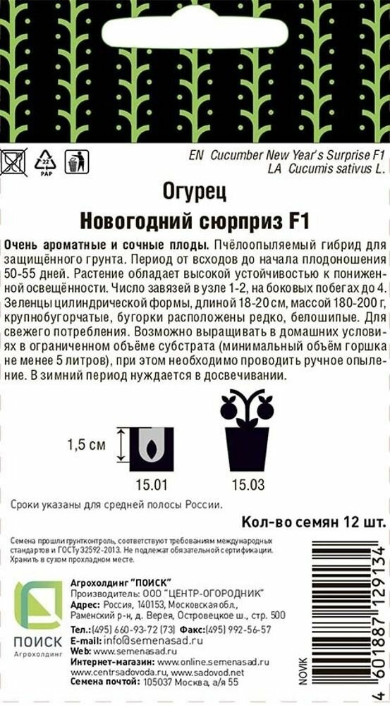 На сегодняшний день товар «Семена овощей Поиск огурец Новогодний сюрприз F1 12 шт.» можно купить с кешбеком в 1 магазине: Яндекс.Маркет