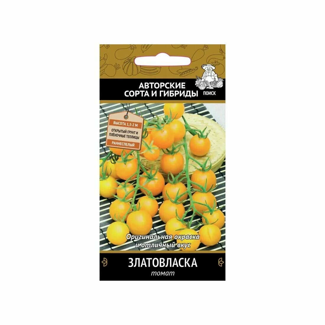 **Семена овощей Поиск томат Златовласка** подходят для выращивания рассадным способом под пленкой или в открытом грунте. Сорт раннеспелый. Требует подвязки к опоре. Рекомендуется проводить формование куста.