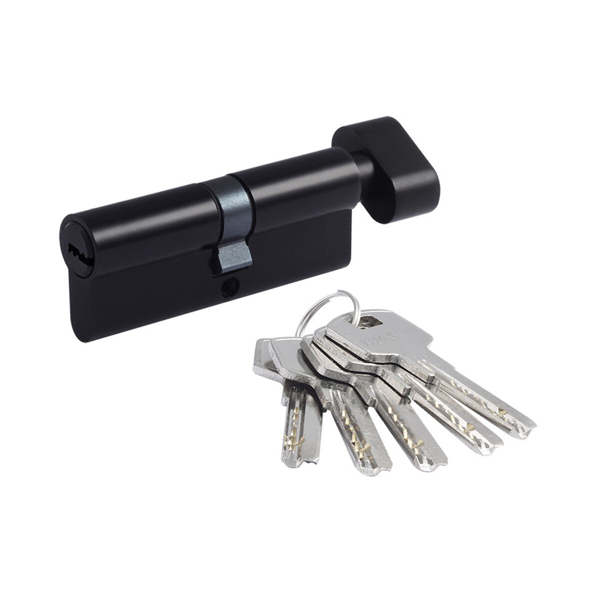 Цилиндр для межкомнатных и входных дверей, цвет черный. Имеет вертушку для удобного запирания изнутри помещения без использования ключа.