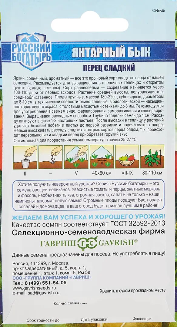 Сервис сравнения цен СкидкаГИД предлагает сравнить цены на товар «Семена овощей Гавриш перец Янтарный бык 10 шт.»