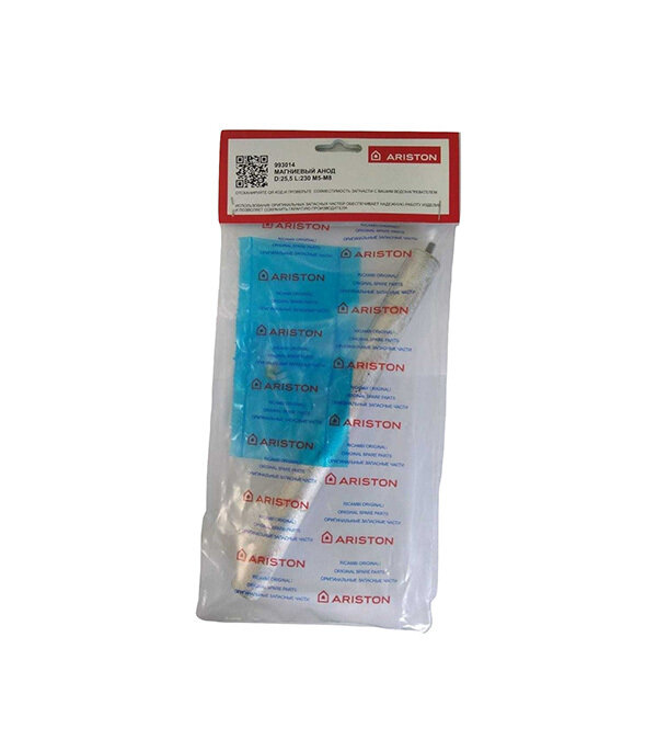 **Анод магниевый Ariston** предназначен для защиты бака и нагревательного элемента от коррозии. Выполнен в виде металлического стержня, на который нанесен слой магниевого сплава 21,3 – 25,5 мм. Главная задача анода — защита внутренней поверхности бака от солевых отложений, образующихся от воды. Элемент предотвращает образование коррозии на стенках резервуара, принимая на себя все процессы окисления. В процессе эксплуатации необходима регулярная замена анода на новый.