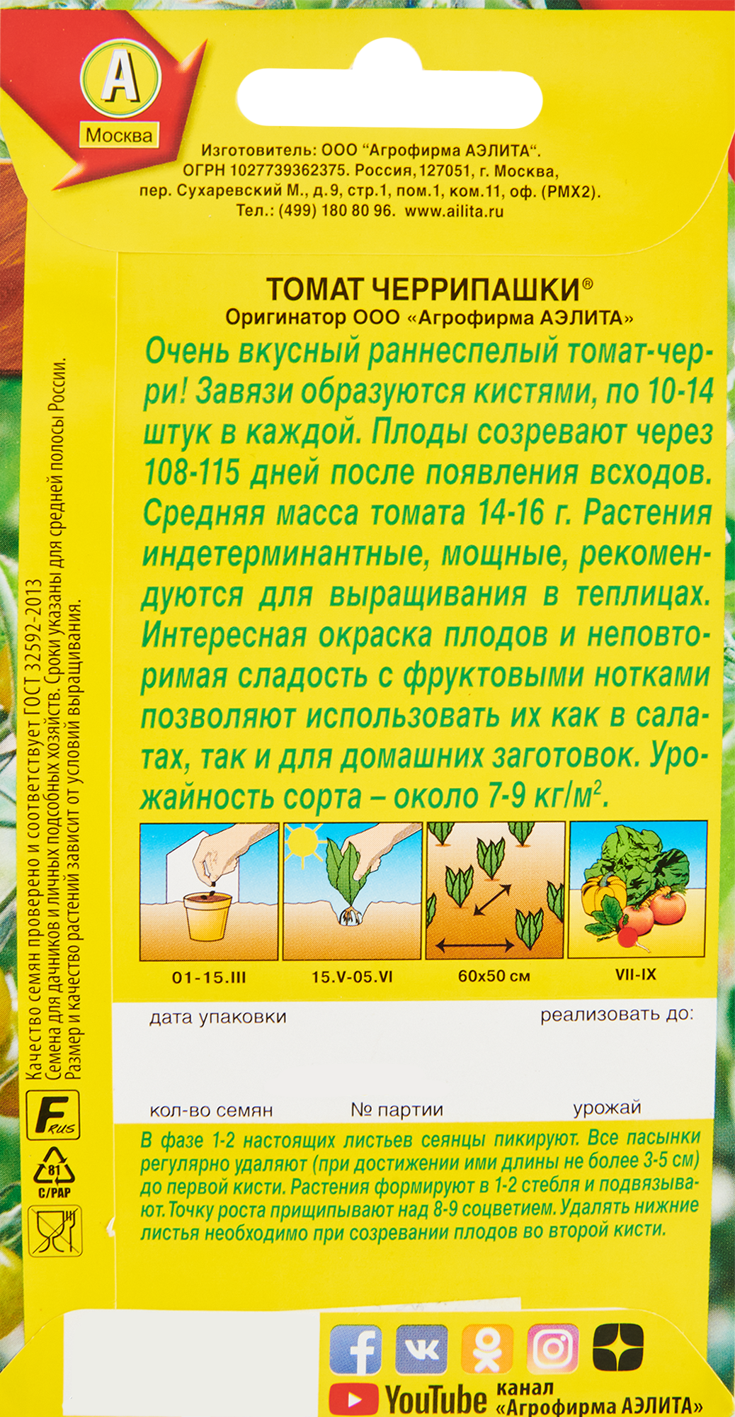 Сервис сравнения цен СкидкаГИД предлагает сравнить цены на товар «Семена овощей Аэлита томат Черрипашки 20 шт.»