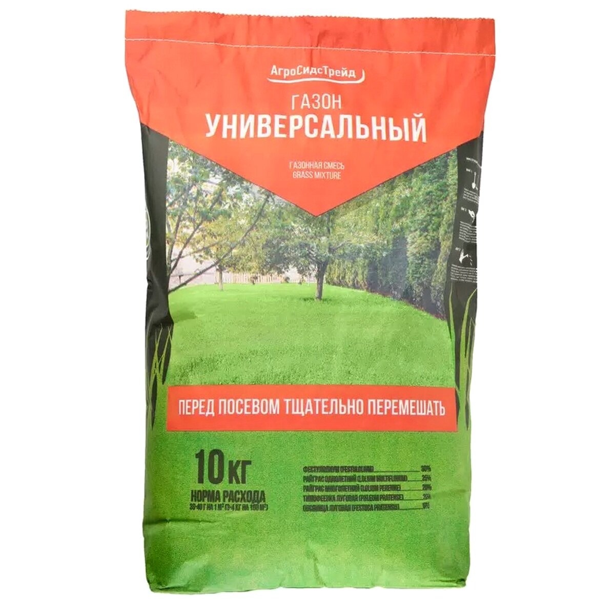 **Семена газона Агросидстрейд Универсальный** используются для посадки на дачном участке, в парке или сквере. Перед высевом рекомендуется тщательно перемешать содержимое пакета. Подробная инструкция по использованию размещена на оборотной стороне упаковки. Состав: фестулолиум, райграс однолетний, райграс многолетний, тимофеевка луговая, овсяница луговая.