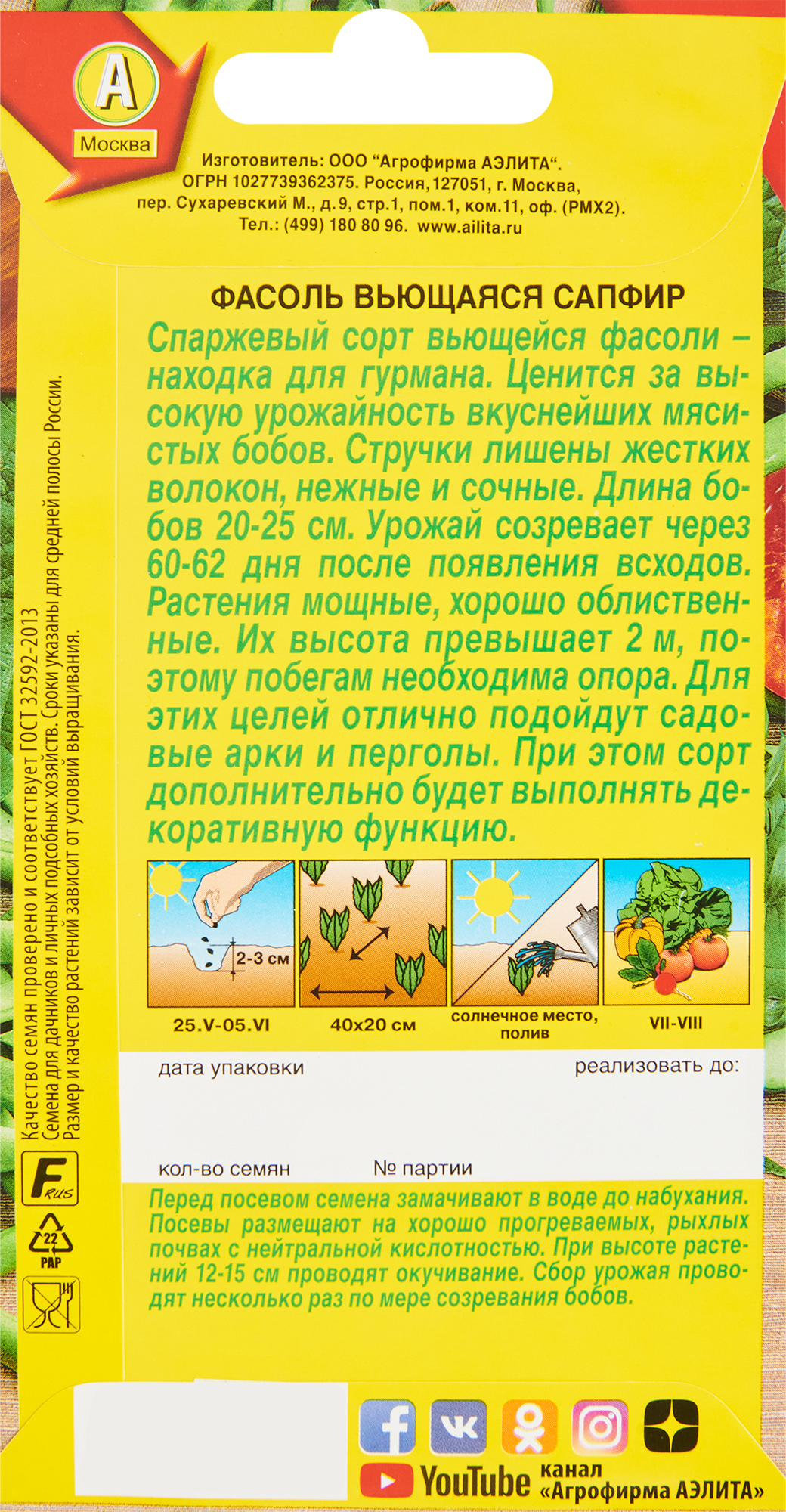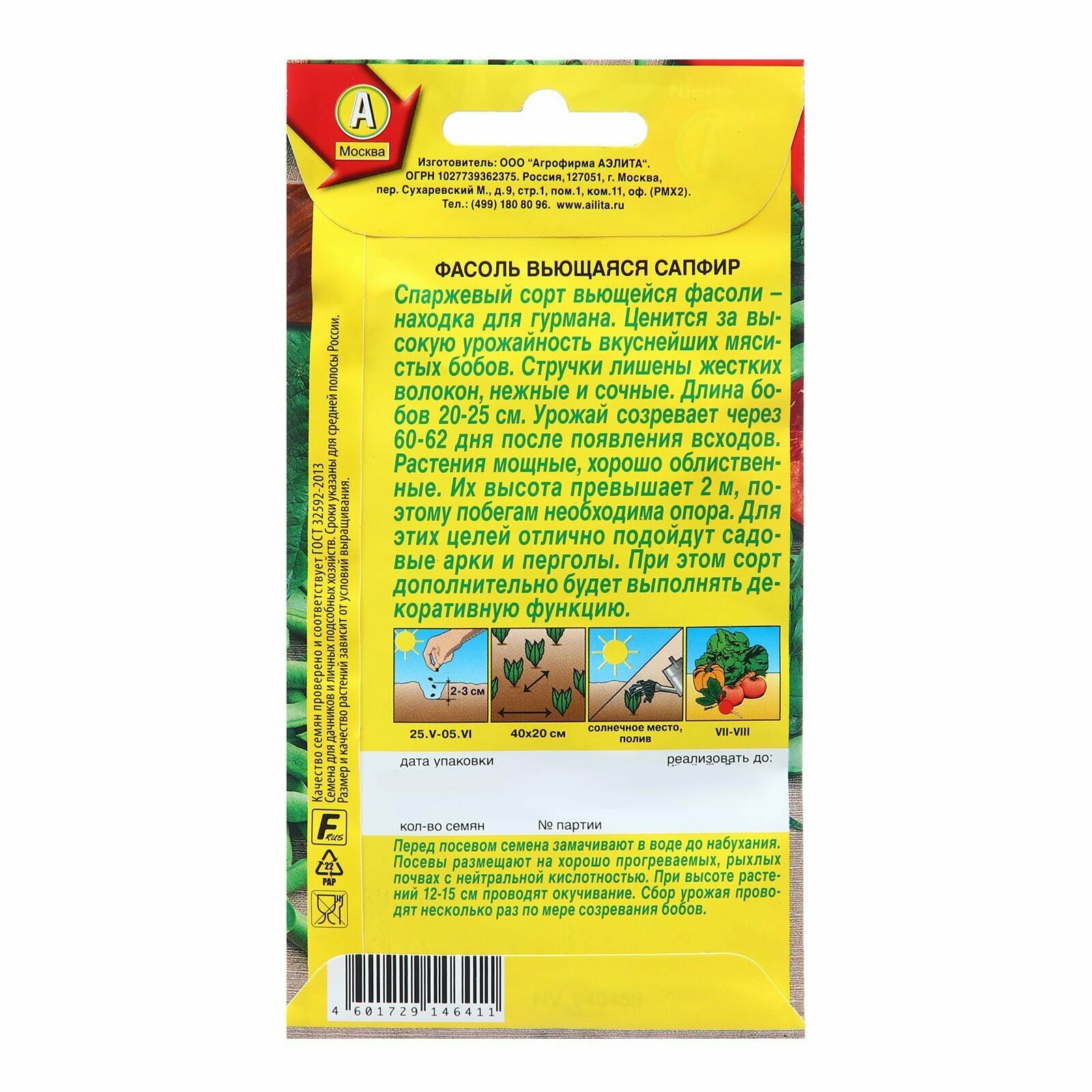 Семена овощей Аэлита фасоль вьющаяся Сапфир