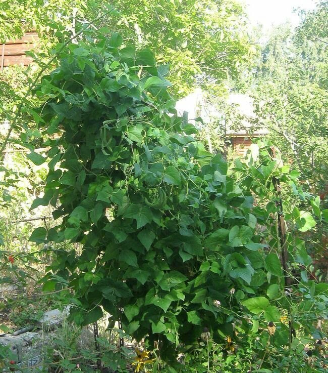 **Фасоль вьющаяся Сапфир** — высокоурожайный спаржевый сорт с мощными вьющимися стеблями и вкусными мясистыми бобами. Собирать бобы можно через 60-62 дней от всхода, растения желательно крепить на опору, они достигают 2 метров в высоту. Могут служить живой изгородью для зонирования огорода. После созревания бобы длиной 20-25 см, молодые могут использовать в готовке целиком, поскольку не содержат жестких волокон. В конце мая-начале июня семена, предварительно замочив, высаживают на глубину 2-3 см. Когда растения дорастают до 15 см, окучивают. Важно обеспечить доступ тепла и своевременный полив.