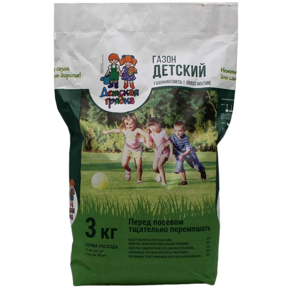 **Семена газона Агросидстрейд Детский** используются для посадки на дачном участке, в парке или сквере. Перед высевом рекомендуется тщательно перемешать содержимое пакета. Подробная инструкция по использованию размещена на оборотной стороне упаковки. Состав: фестулолиум, райграс многолетний, райграс однолетний, овсяница луговая, овсяница тростниковая.