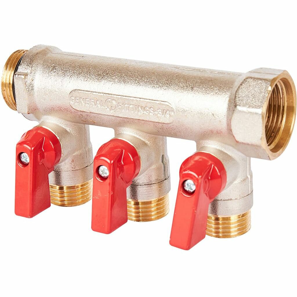 Коллектор с шаровыми кранами Stout на 3 отвода 3/4x1/2