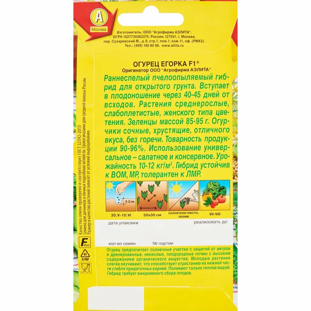 Сервис сравнения цен СкидкаГИД предлагает сравнить цены на товар «Семена овощей Аэлита огурец Егорка F1 10 шт.»