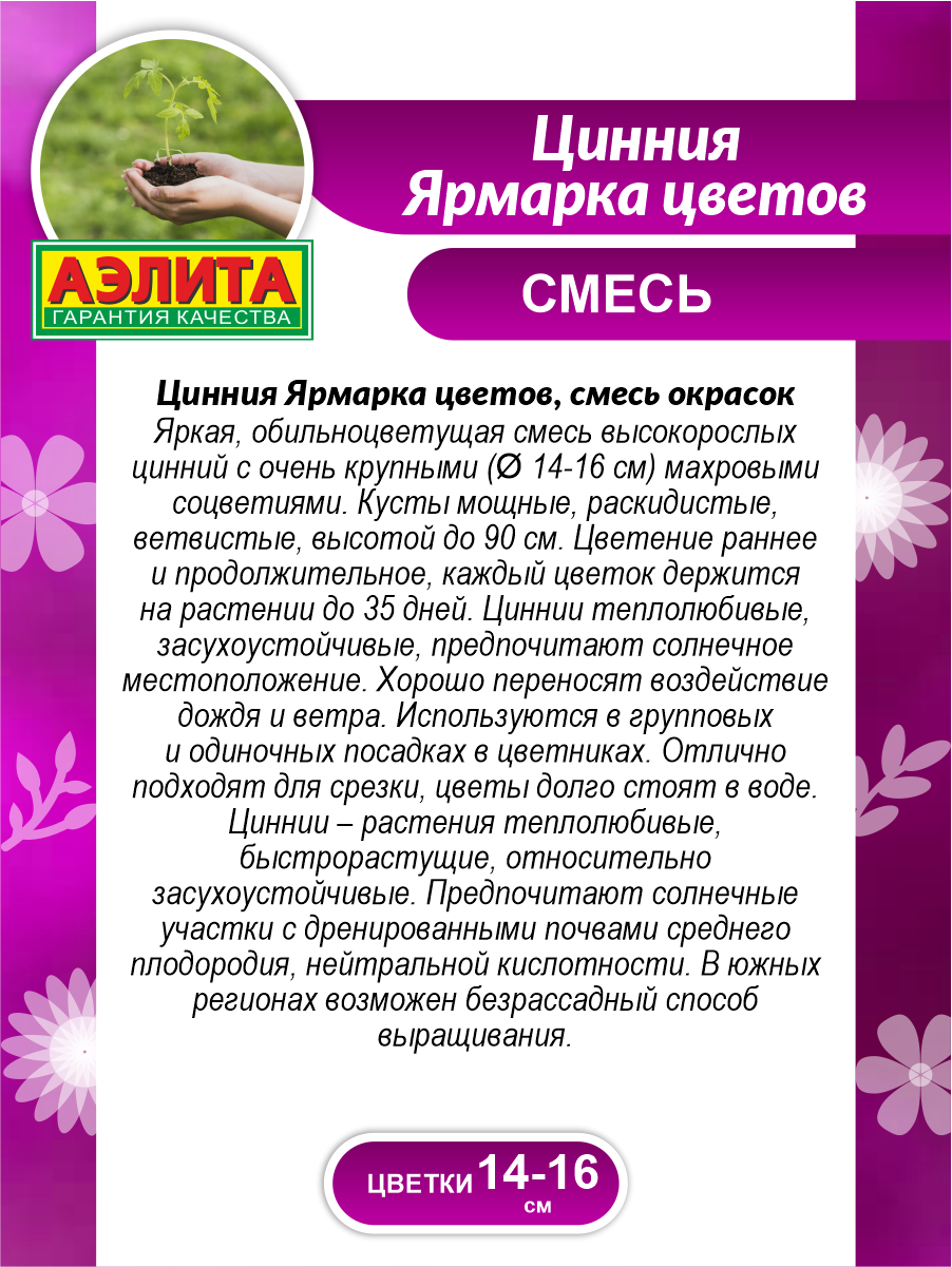 На сегодняшний день товар «Семена цветов Аэлита цинния Ярмарка цветов» можно купить с кешбеком в 1 магазине: Яндекс.Маркет