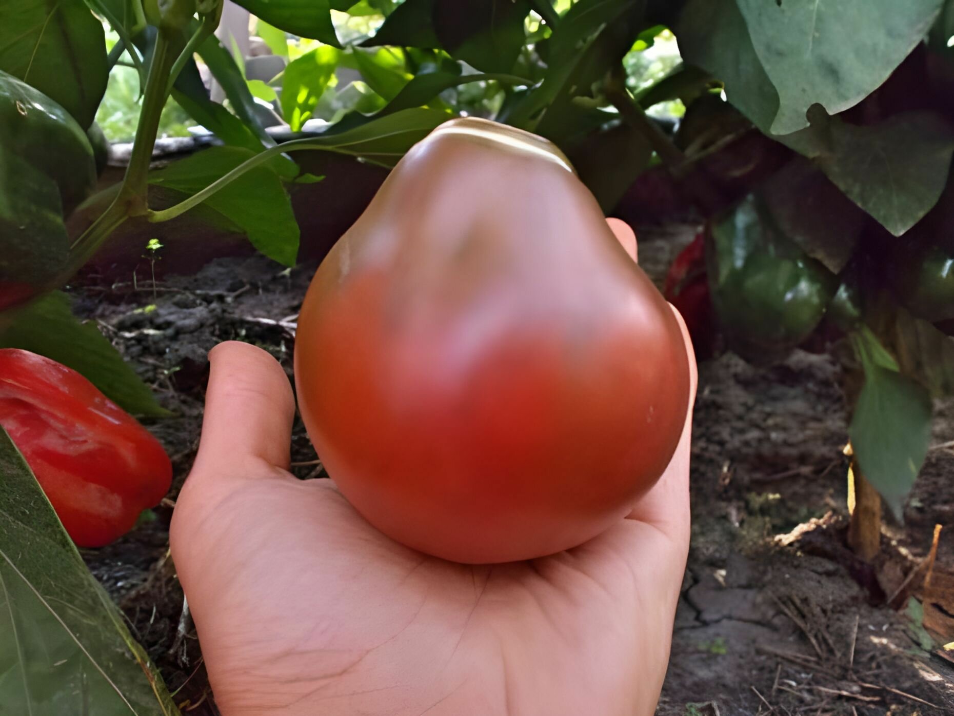 **Томат Винный кувшин** — новый необычный сорт с оригинальными плодами насыщенно-красного цвета. Раннеспелый сорт, от всходов до сбора 105-110 дней. Урожайность с одного растения 5 кг. Помидоры красивые и мясистые, не растрескиваются, с плотной мякотью, по консистенции напоминающей мармелад. Хороши для свежего употребления и цельноплодной консервации, средняя масса 100 г. Подвязывают в 2-3 стебля и удаляют боковые побеги (пасынки).