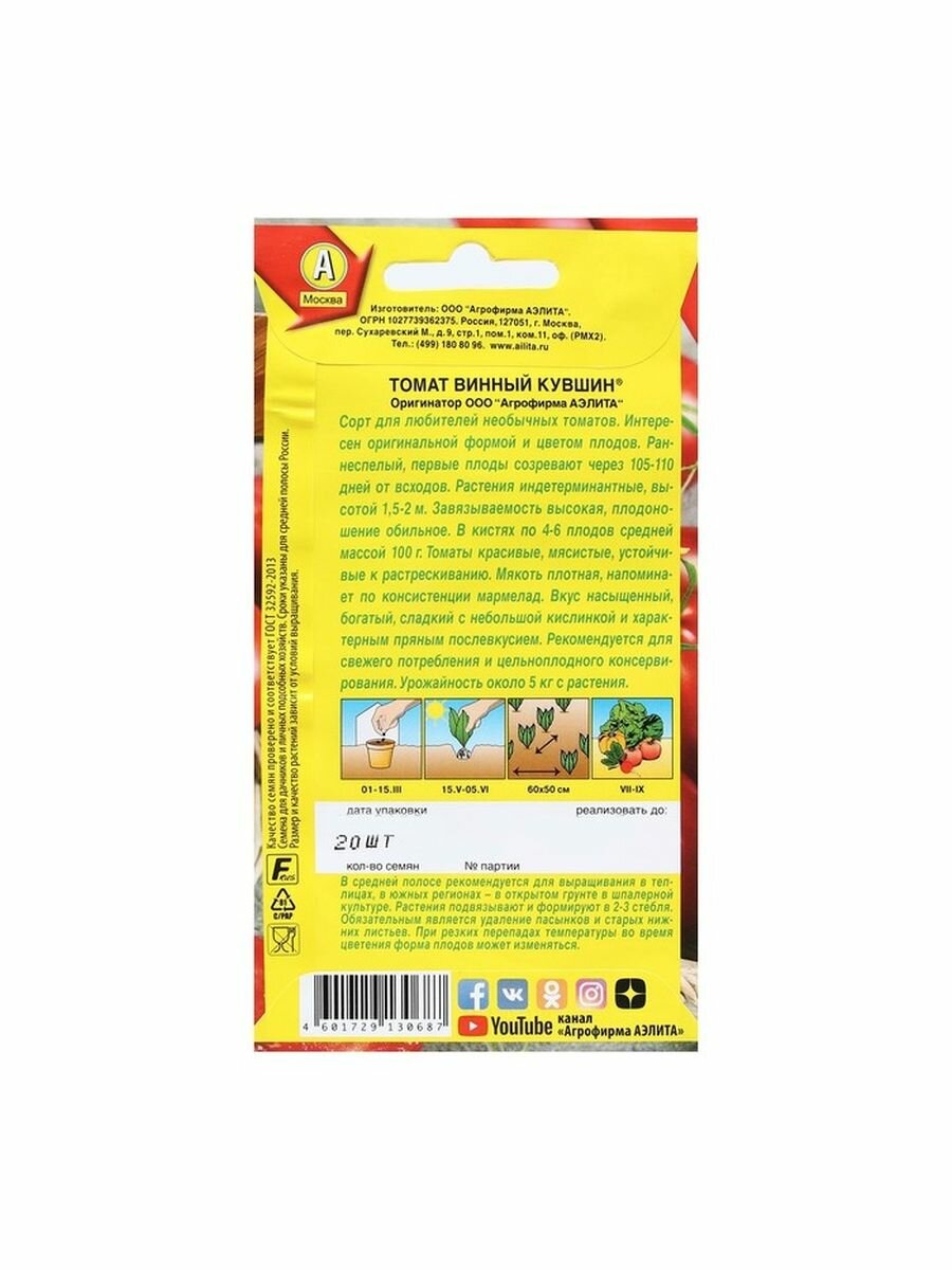 На сегодняшний день товар «Семена овощей Аэлита томат Винный кувшин 20 шт.» можно купить с кешбеком в 1 магазине: Яндекс.Маркет
