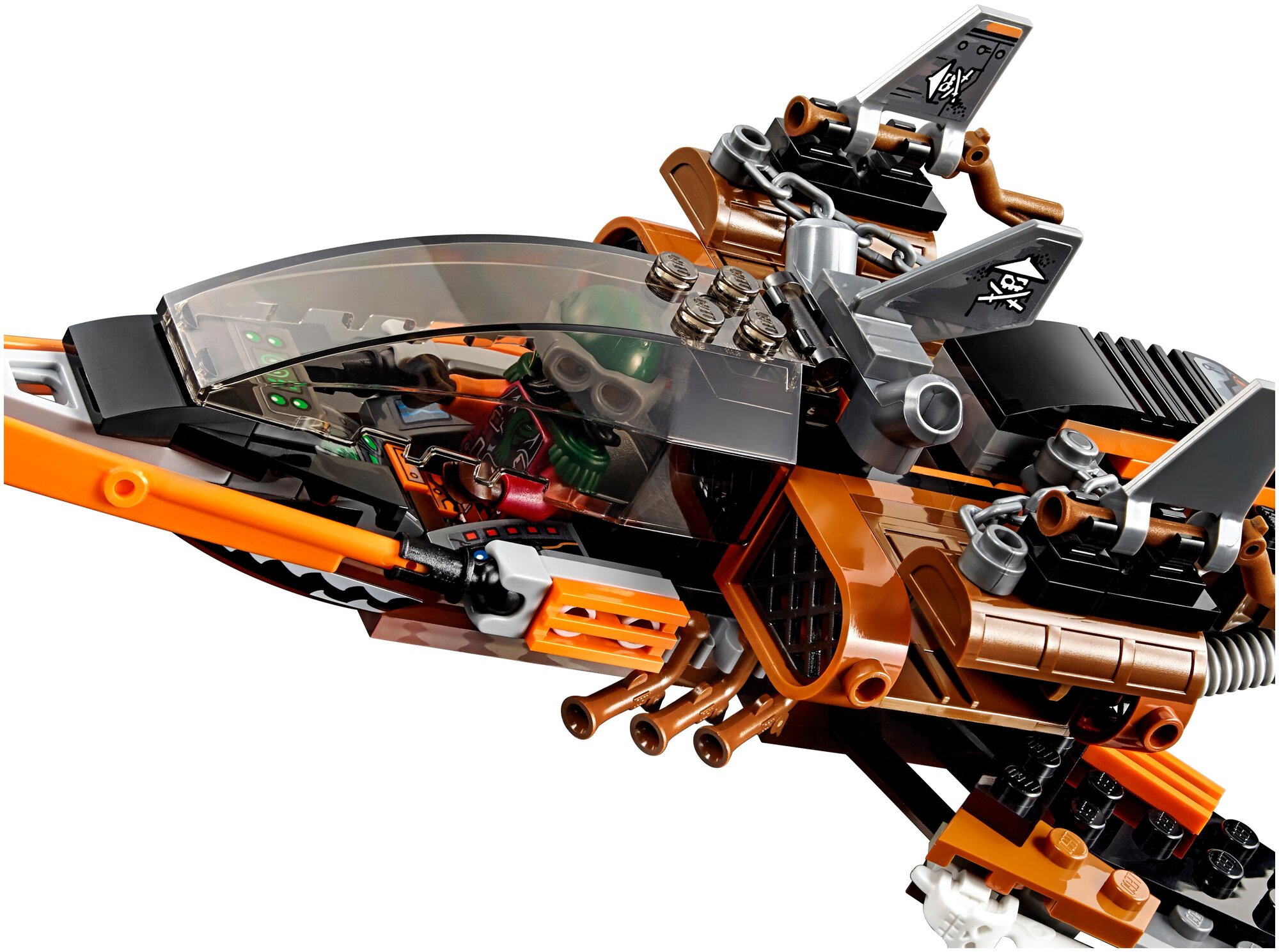 LEGO Ninjago Небесная акула сможет заинтересовать ребенка. Боевой корабль небесных пиратов неслучайно носит такое название. Специальная обтекаемая форма для лучшей проходимости в воздухе и внушительное вооружение смогут заставить ниндзя о том, как лучше его атаковать. Но лучше все же не испытывать судьбу: роковая встреча может стать последней. LEGO Ninjago - стань частью древней истории.