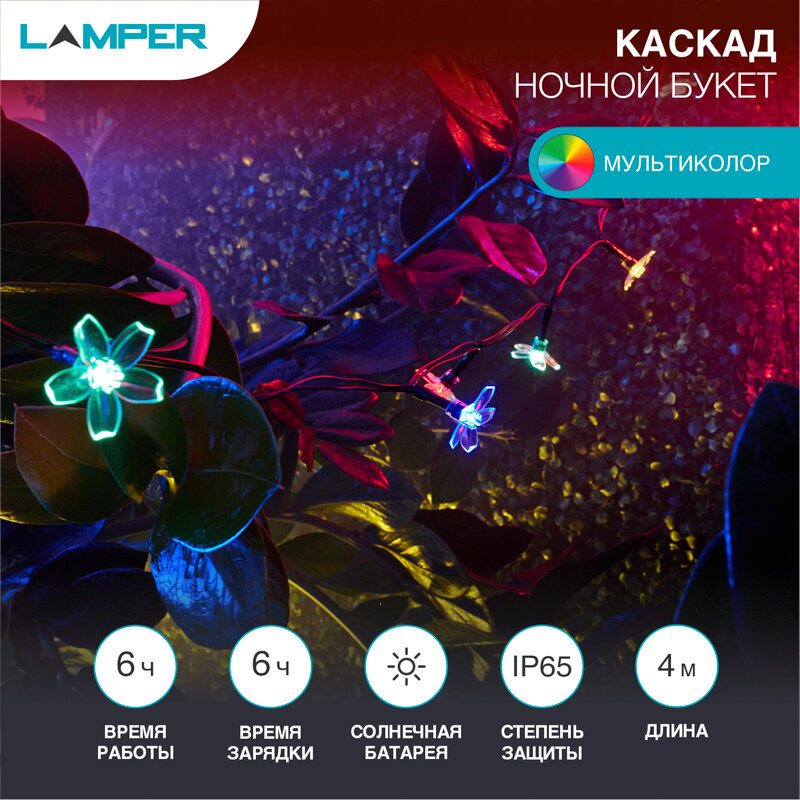 На сегодняшний день товар «Гирлянда светодиодная Lamper "Ночной букет" на солнечных батареях 4 м цвет разноцветный» можно купить с кешбеком в 1 магазине: Яндекс.Маркет