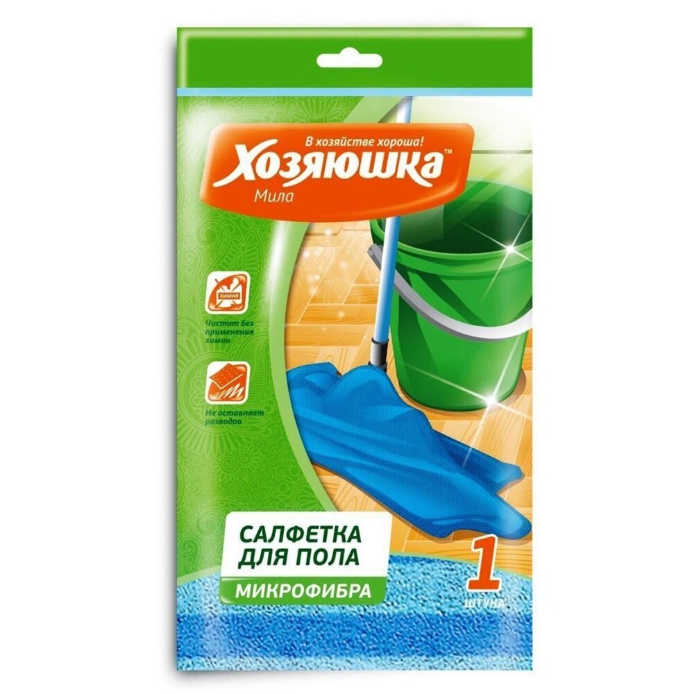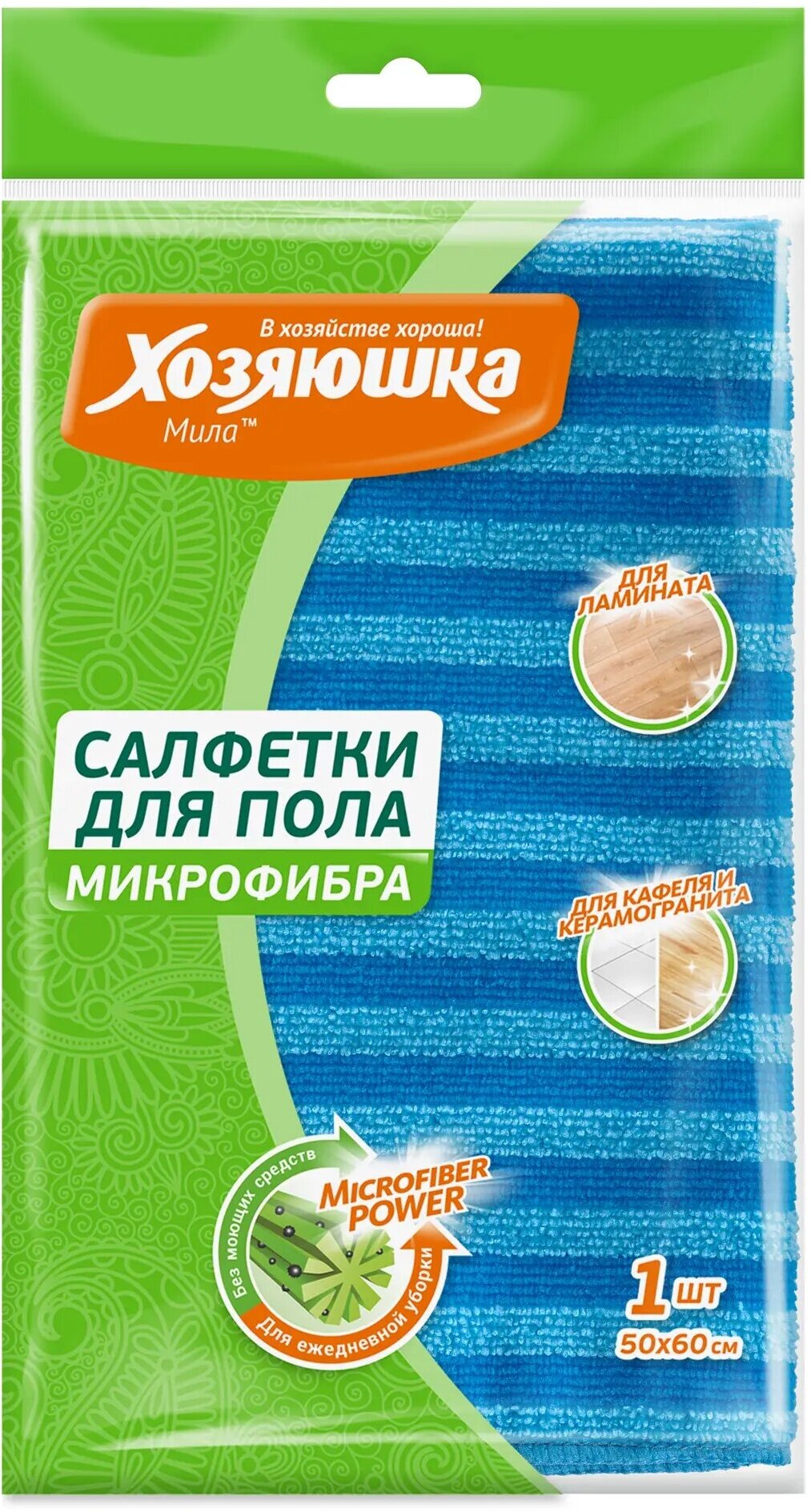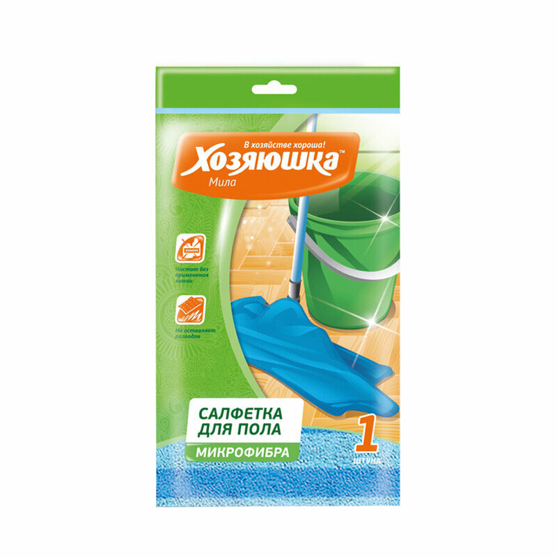 **Салфетка для пола Хозяюшка Мила** из микрофибры увеличенной плотности подходит для ухода за любыми напольными покрытиями, особенно деликатными, такими как ламинат, паркетные и деревянные полы за счет минимального использования влаги и моющих средств.