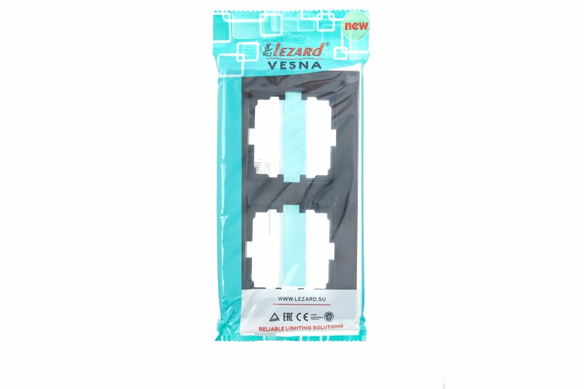 Рамка для розеток и выключателей Lezard Vesna 742-4200-147 2 поста цвет черный матовый