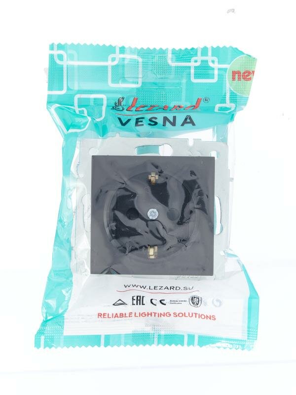 Розетка Lezard Vesna изготовлена из синтетического полимера с высокими показателями эластичности и ударопрочности. Подходит для установки в жилых и нежилых помещениях.