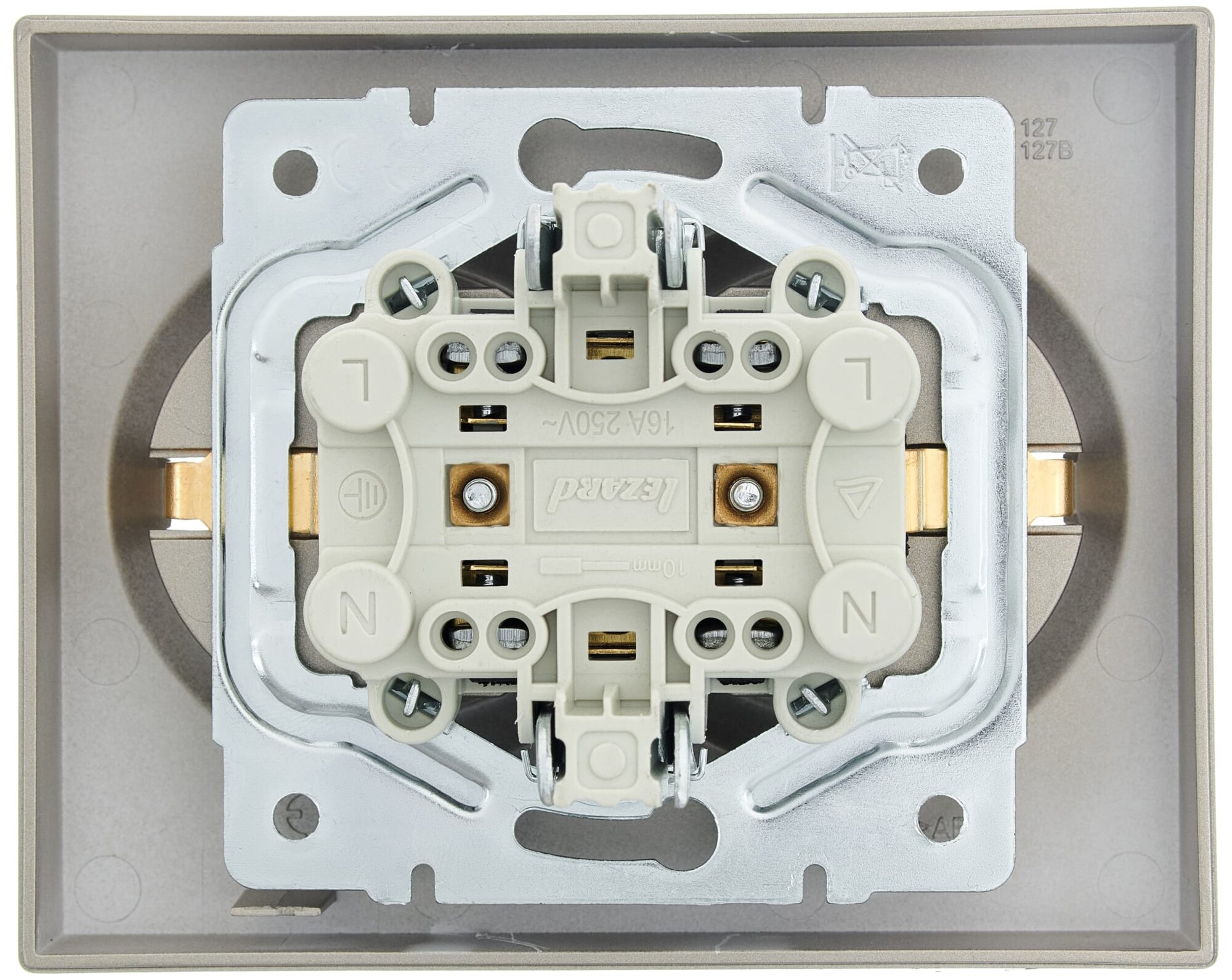 **Розетка Lezard Vesna 742-3700-127B** - модель встраиваемого типа, с заземлением. Предназначена для установки в помещениях жилого, общественного, административного назначения. Корпус изготовлен из прочного и устойчивого к деформации, разрушению в процессе эксплуатации ABS-пластика.