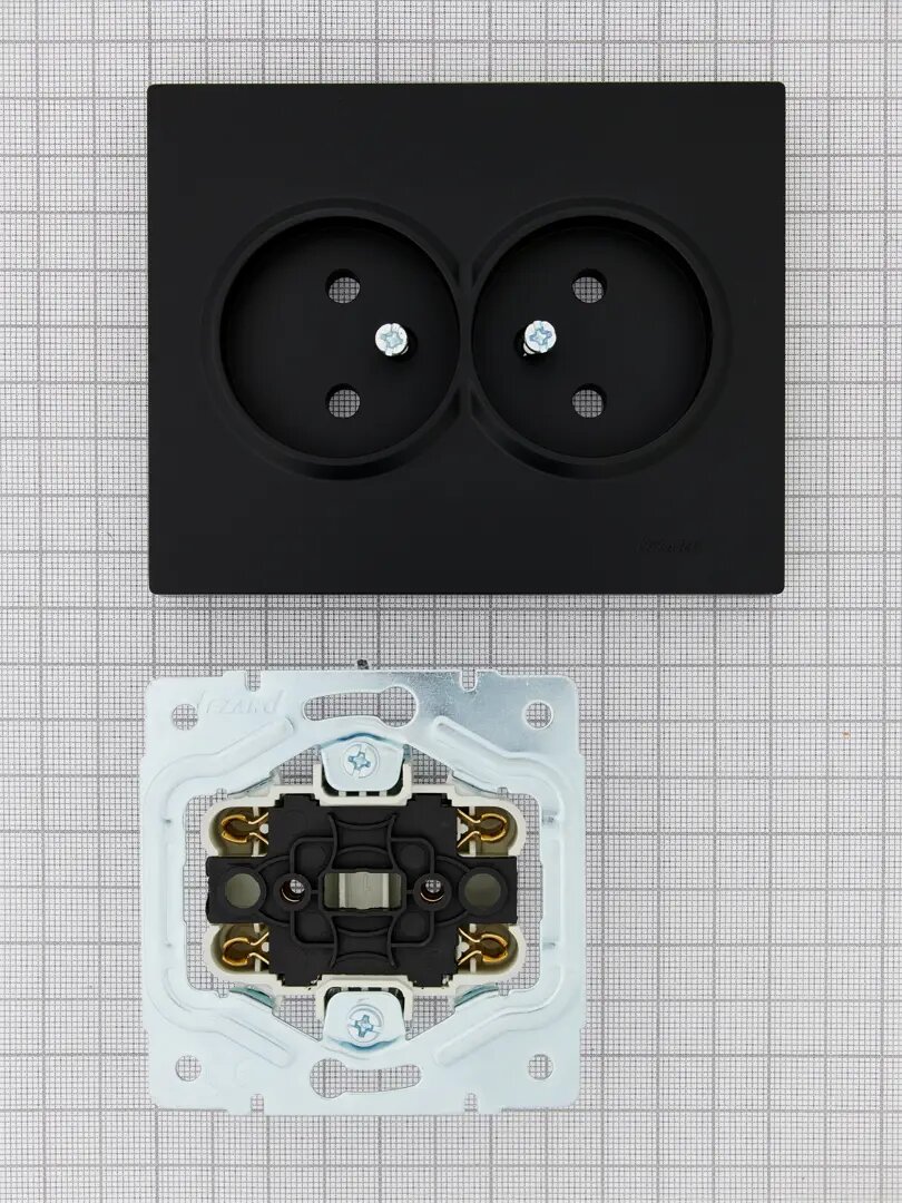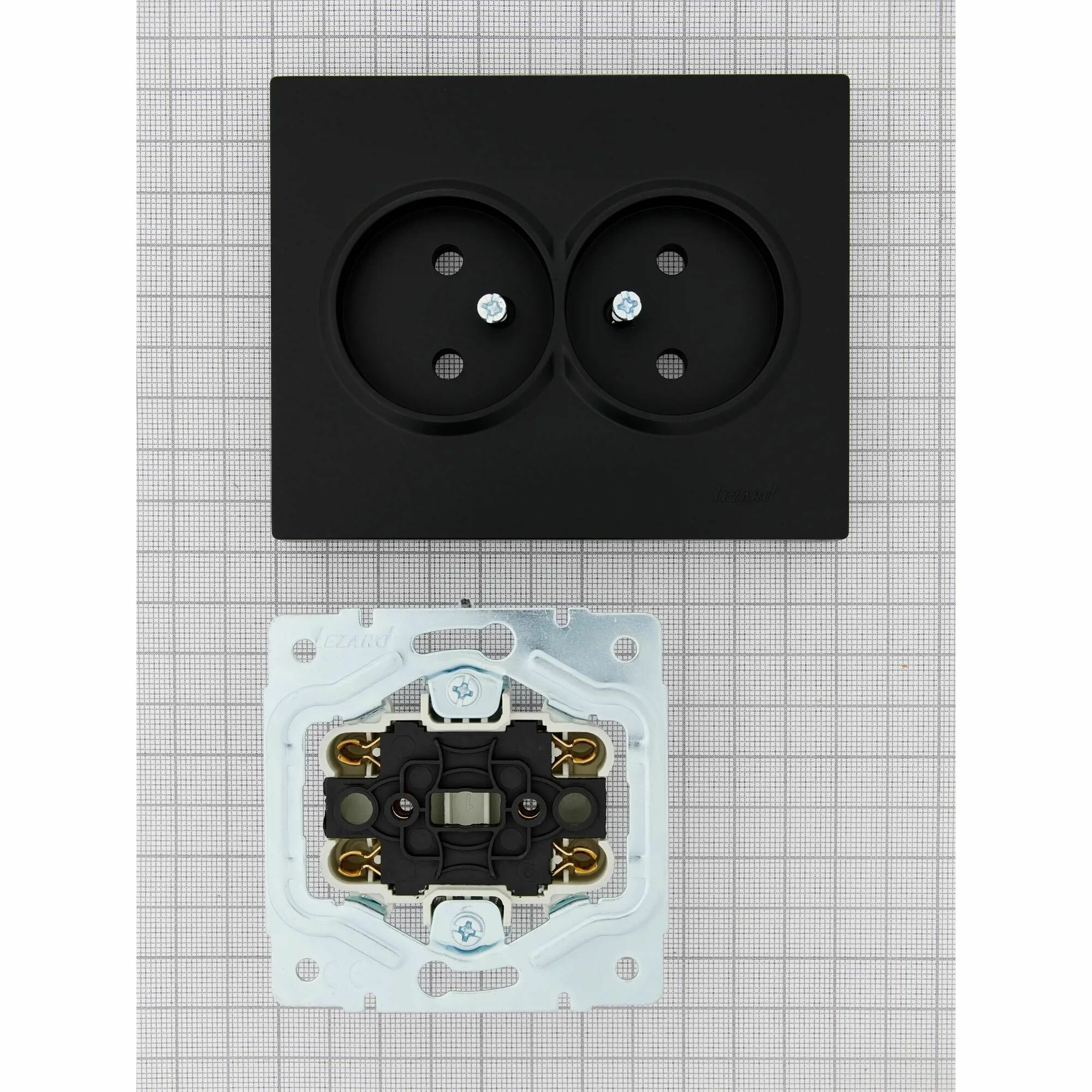 Розетка двойная встраиваемая Lezard Vesna 742-4200-128B без заземления цвет черный
