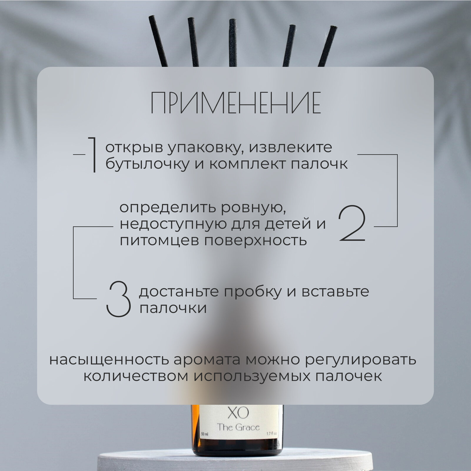 | Состав комплекта | Картонная коробка, стеклянная бутылочка, фибровые палочки |