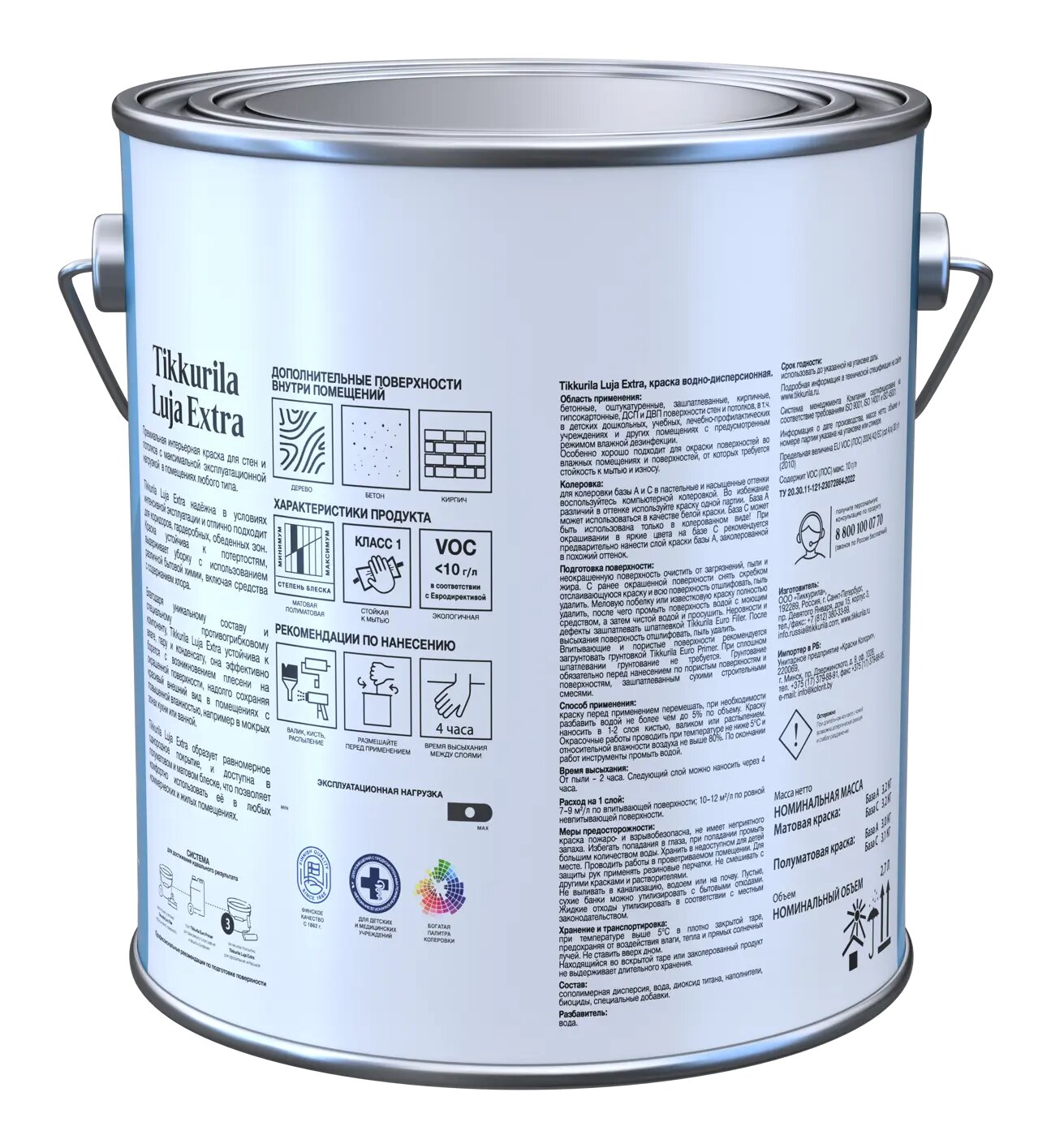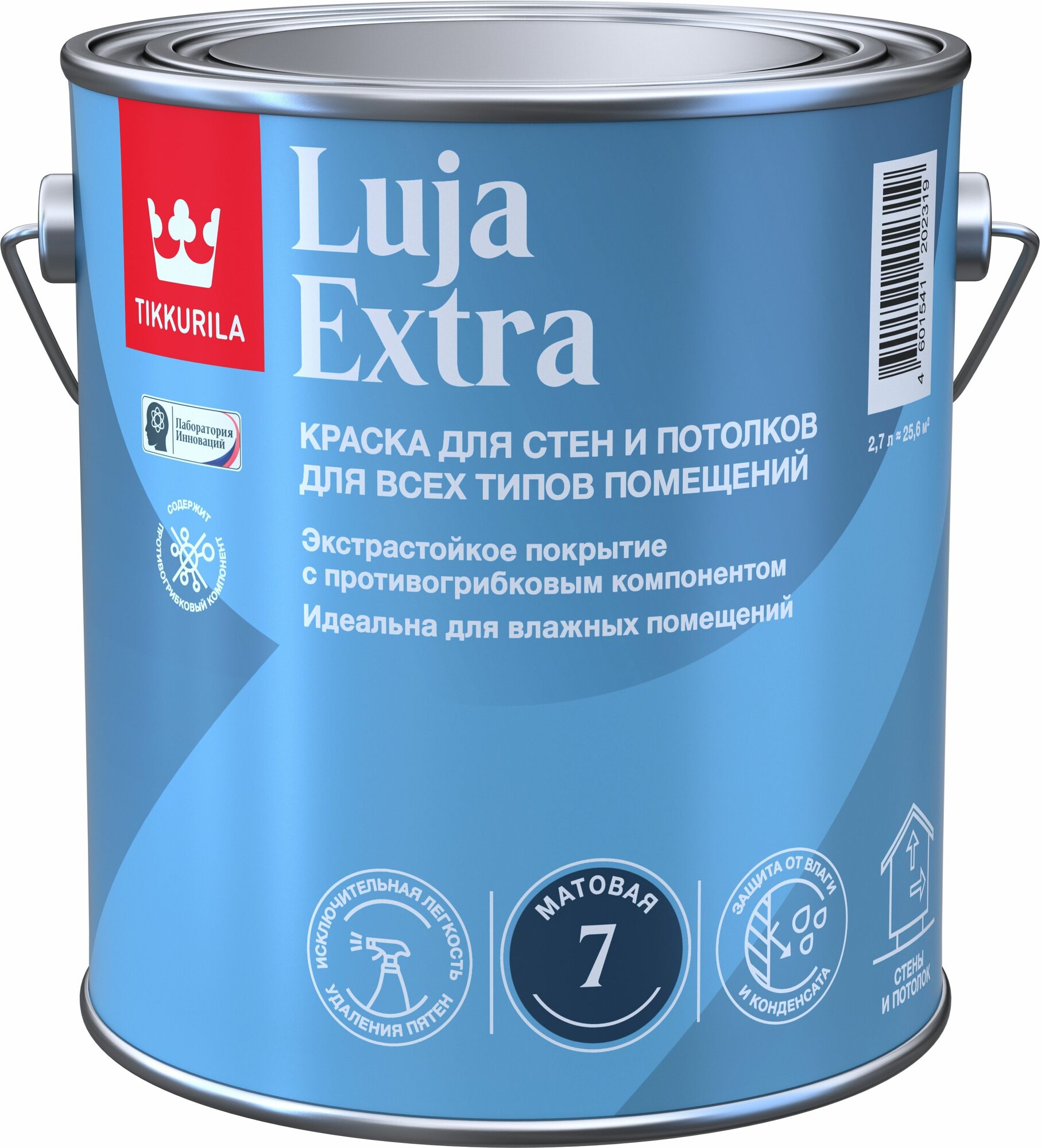 **Краска интерьерная моющаяся экстра-стойкая Tikkurila Luja Extra** предназначена для окраски новых и ранее окрашенных бетонных, оштукатуренных, зашпатлеванных, кирпичных, гипсокартонных поверхностей, ДСП и ДВП внутри помещений, в т.ч. в детских дошкольных, учебных, лечебно-профилактических учреждениях и других помещениях с предусмотренным режимом влажной дезинфекции.