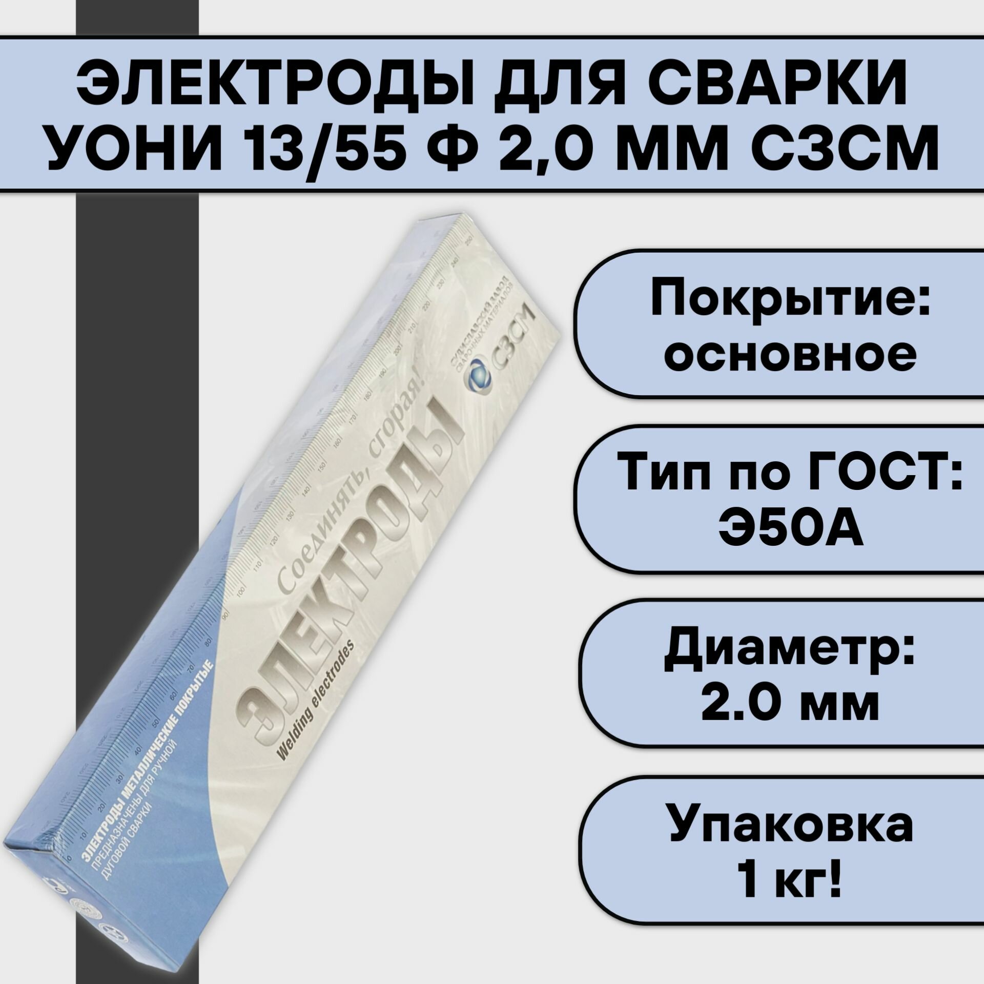 **Электрод сварочный СЗСМ УОНИ-13/55** предназначен для работы с углеродистыми сталями с содержанием углерода до 0,25%. Применяется в случаях, когда к качеству формируемых швов предъявляются особые требования. Сварку можно вести в любом пространственном положении, кроме вертикального — сверху вниз.