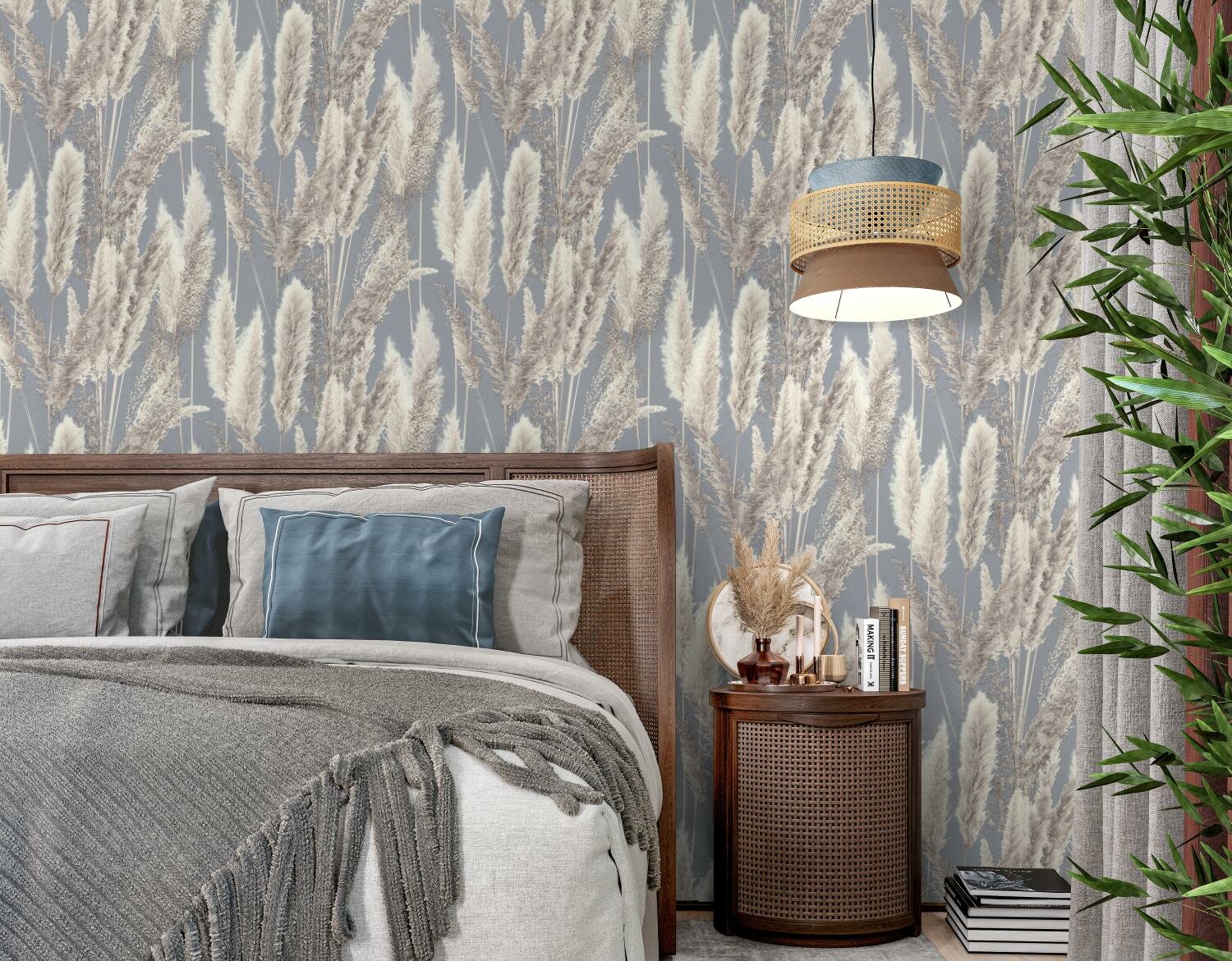 **Обои флизелиновые Vog Collection Cortaderia 72086-42** отличаются стильным и эффектным дизайном. Они легко клеятся, расправляются и хорошо сохраняют первоначальную форму. Даже в случае намокания такие изделия быстро высыхают. Они состоят из двух слоев: верхнего декоративного в виде винила горячего тиснения и подложки из флизелина. Благодаря гладкой поверхности обои не собирают пыль, что значительно упрощает уход за ними.